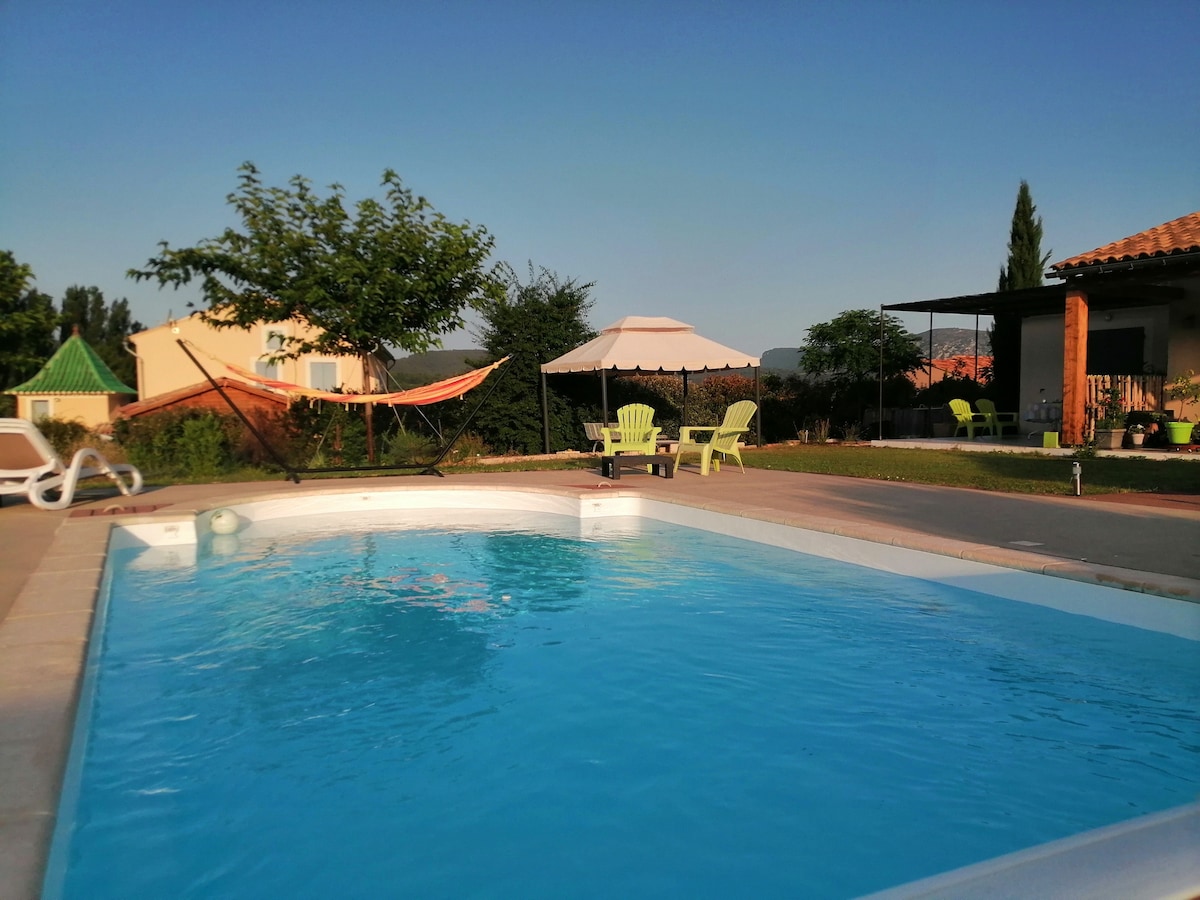 Convidamos você a ficar em nossa pequena casa de campo localizada em Valleon la Romaine. Sua independência, sua localização em frente ao gigante da Provença ( Monte Ventoux ) , todas combinam para tornar sua estadia aqui muito agradável . Mesmo pequeno , nada falta : TV, ar condicionado, banheiro privativo... Você terá acesso ao jardim e piscina, e a grande varanda e cozinha totalmente equipada (geladeira, forno, máquina de lavar roupa, máquina de lavar louça ...) Como desejar , podemos estar ou estar presentes, ou discretos, a fim de ajudá-lo a desfrutar do nosso pequeno canto do paraíso (ambiente familiar) . Nossa casa está localizada em uma área muito tranquila, com a chance de estar a 10 minutos a pé do centro da cidade e de nossa famosa ponte romana e vestígios . A estação de trem mais próxima fica em Avignon (45 km , 45 min) , você acessa a partir da rodovia Orange-Sud ou Bollène . Você pode estacionar facilmente em frente à casa . Como carro é essencial para visitar nossa bela região.