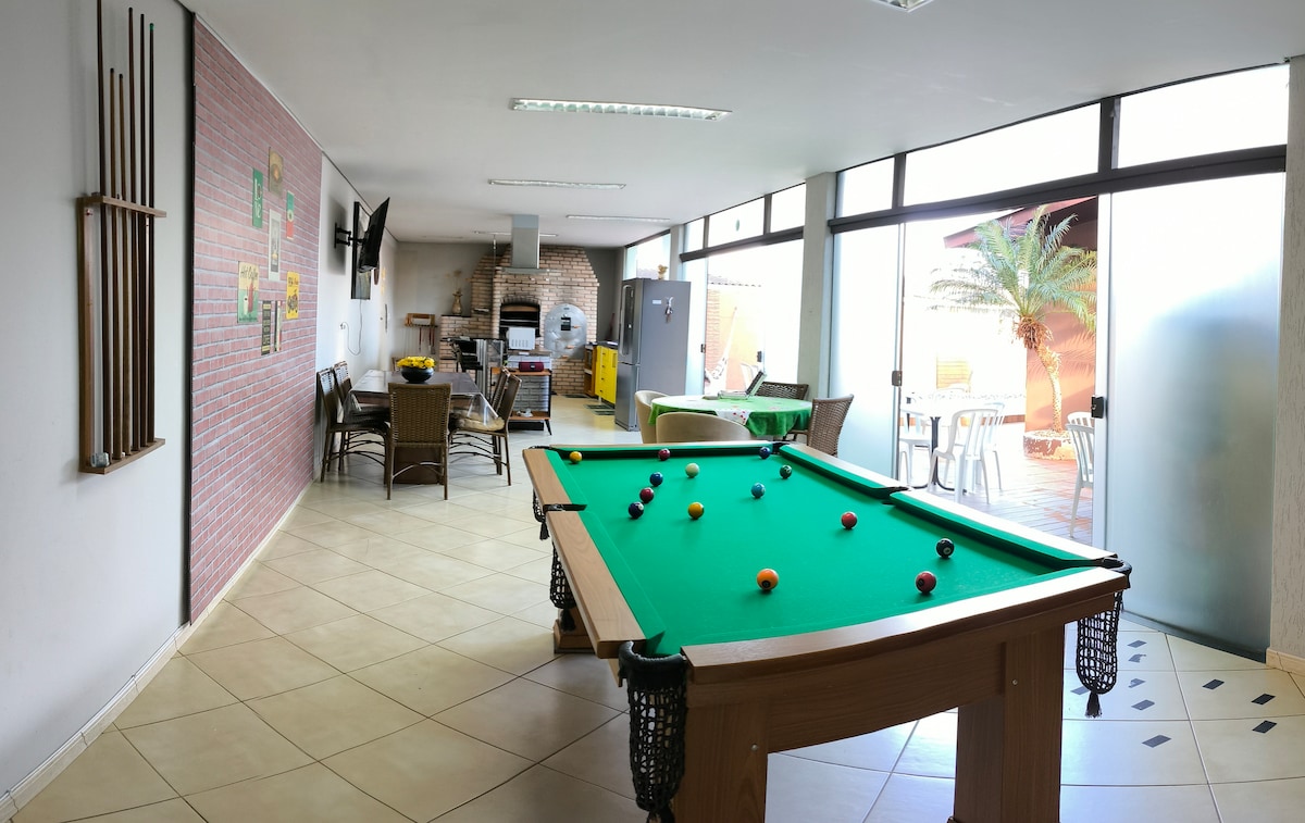 Espaço Vip Hall, conta com uma ampla área para pessoas que vem para Cascavel à passeio ou a trabalho. Vc vai desfrutar de uma bela piscina com aquecimento solar, espreguiçadeiras, mesas, cadeiras e guarda-sóis. Área gourmet com churrasqueira com todos utensílios de churrasco. cozinha completa com utensílios. Bancada em granito com banquetas altas, mesas bistrô com banquetas em madeira. Mesa de sinuca, Tv 65 polegadas com streaming. sofá para seu descanso.