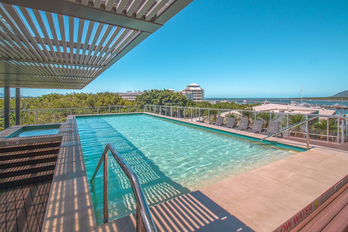 Este luxuoso apartamento na cobertura na cidade de Cairns está localizado em um complexo tranquilo central a todas as principais atrações de Cairns, incluindo a Esplanada, o Aquário de Cairns, o centro comercial Cairns Central, cafés e restaurantes. Relaxe na sua área de entretenimento privativa no terraço com academia, banheira de hidromassagem, cozinha acoplada, área de TV e vistas deslumbrantes para as montanhas de Cairns. Uma piscina de borda infinita, ar condicionado e todas as conveniências modernas, como Wi-Fi e três TVs Netflix, tornarão suas férias inesquecíveis.