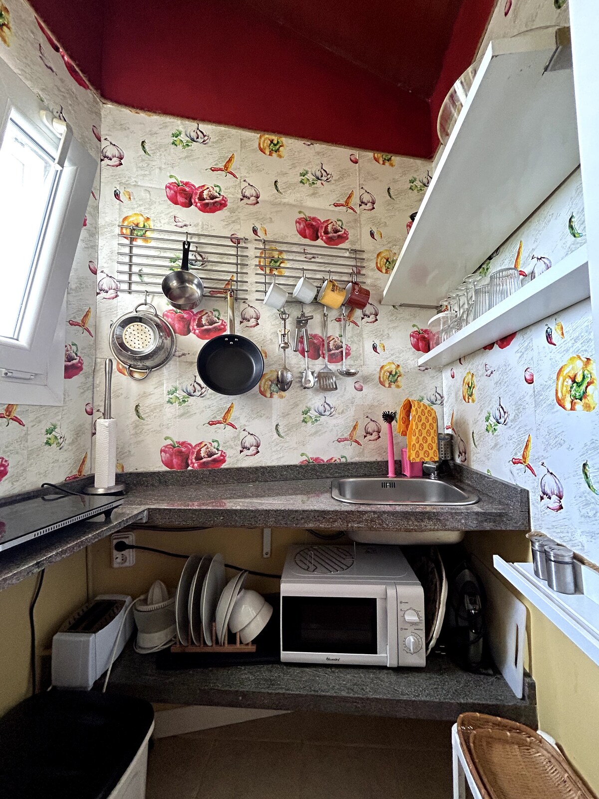 95mc em dois andares e equipado com os serviços necessários para uma boa estadia (ar condicionado, salamandra, máquina de lavar roupa, máquina de lavar louça, micro-ondas, torradeira, forno, máquina de café nespresso, wi-fi, netflix) Rés-do-chão: cozinha/sala de jantar, sala de estar, quarto com cama de casal, jardim e casa de banho. Segundo andar: quarto com cama de casal, loft para crianças e sofá-cama individual. Terraço com 16 mc Há apenas uma casa de banho. Aspeto a considerar se a reserva for para 4 pessoas e não da mesma família