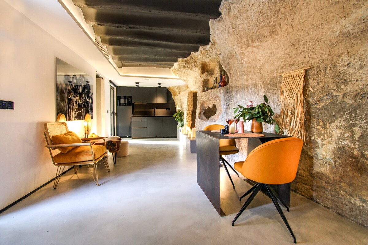 KAVERNO é uma gruta centenária, que foi totalmente reabilitada em 2022. É composto por 80 m2, dividido em três andares, um primeiro andar, com uma espaçosa sala de estar de vanguarda onde se funde com uma cozinha em plano aberto, totalmente equipada e uma espetacular jacuzzi aquecida privada. No segundo andar encontramos o seu quarto com uma cama KING SIZE e vista para o Hoz do rio Júcar. No piso da cobertura, há um terraço privado, onde está localizada uma piscina privada.