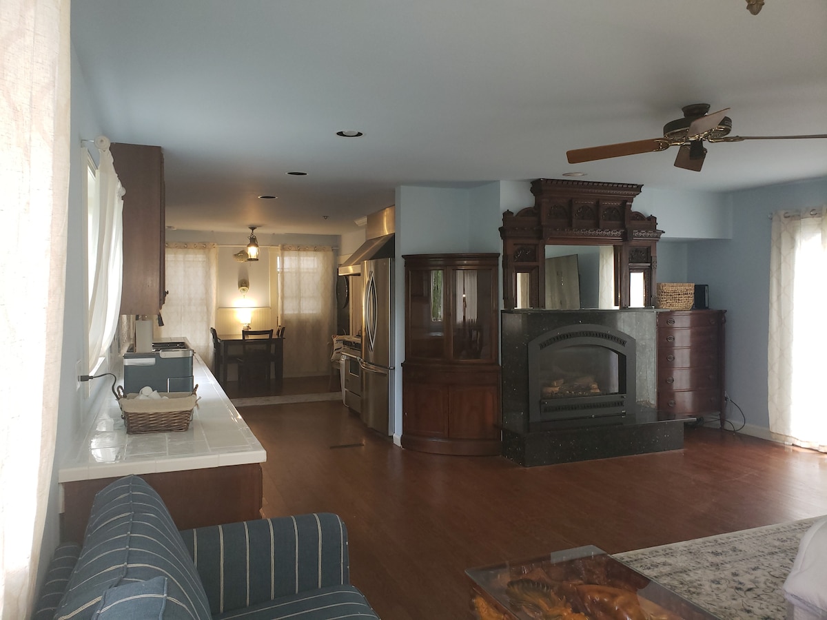 Apartamento estúdio encantador em Nova Inglaterra no bairro de Fifth Ward, em Newport. A uma curta caminhada do centro da cidade e da orla. Estacionamento privado gratuito na rua incluído para 2 carros. Check-in e check-out autónomos. 1 cama queen size. Suba a unidade ( 1/2 lance de escadas) Ar condicionado, lareira a gás interior, deck e pátio com grelhador a gás, Internet de alta velocidade, máquina de lavar/secar na unidade. Do outro lado da rua do Kings Park, praia, parque infantil e The Waterfront Walk. Café e bebidas frias gratuitas, Água engarrafada e fruta.