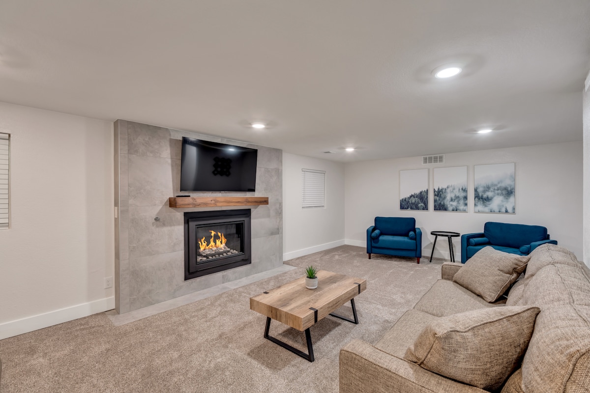 Apartamento moderno de 1 quarto construído em 2021. Localizado no centro de Castle Rock. A uma curta distância a pé de restaurantes, eventos, trilhos para caminhadas e parques. Estacionamento na rua disponível em frente à propriedade. Ar condicionado. No interior, há uma cozinha completa com produtos essenciais, incluindo café e natas, e uma mesa de jantar com cadeiras. Lavandaria completa com 2 cápsulas fornecidas. 1 quarto com uma cama queen, televisão para streaming, lareira elétrica e armário walk-in. A sala principal tem um sofá/cama queen extraível e uma poltrona reclinável. Casa de banho completa com sabonetes. Acomoda 4 pessoas.