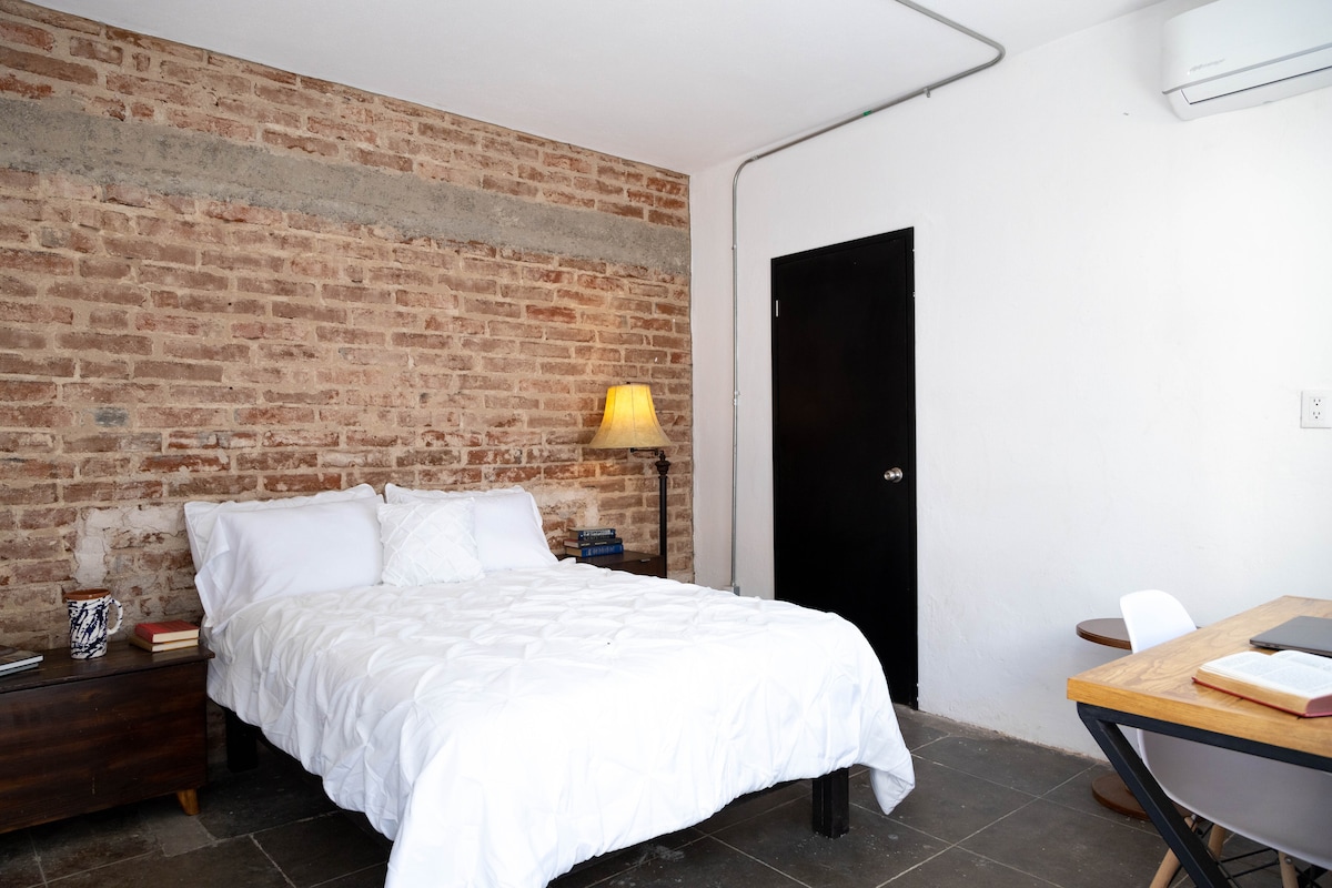 Pequeño y diferente departamento, ubicado detrás de plaza comercial con cafetería y otros comercios. El acceso es por una puerta de servicio; en la parte posterior de la plaza encontras un departamento antiguo con mucho carácter. Alrededor hay espacios para trabajar, cafés y restaurantes, ya que se encuentra sobre Blvd. Hidalgo, una de las zonas más activas de la ciudad, cerca de bares y la Catedral Cuenta con estacionamiento, sin embargo por ser una zona muy concurrida en veces no lo respetan