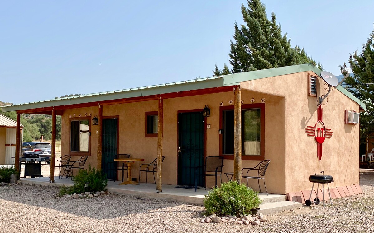 Esta casita de estuque de um quarto recentemente remodelada com uma kitchenette está rodeada pela natureza selvagem de Gila. Esta é a nossa casita mais pequena e mais económica. Esta unidade contém um quarto com uma cama queen-size e uma cama de solteiro, um mini frigorífico, torradeira (grande o suficiente para fazer uma pizza de 12 polegadas), micro-ondas e uma máquina de café Keurig. A cabana tem uma casa de banho de tamanho completo. Há um pátio partilhado com uma lareira a gás, mesa e cadeiras e uma churrasqueira a gás propano para a sua utilização. A casita está decorada com bom gosto com obras de arte que retratam a área local. -Casita #5 e Casita #6 estão localizadas ao lado. - A estrutura de adobe nas proximidades que aloja algumas das outras casitas foi originalmente construída em meados da década de 1930 durante a Grande Depressão para abrigar os rapazes e homens da CCC que trabalharam com conservação e desenvolvimento de recursos naturais na zona, incluiu a espetacular Passarela. Depois que os projetos do CCC foram concluídos, meu avô transformou o prédio no seu celeiro de feno para o rancho da nossa família. Em 1998, a minha mãe reaproveitou o celeiro de feno em algumas das cabanas que existem hoje. - O pitoresco Catwalk National Recreation Trail fica a apenas 8 minutos de carro das nossas cabanas. À medida que o rio desce pelo Whitewater Canyon, cascata sobre enormes pedregulhos, criando cachoeiras e piscinas escondidas, lugares mágicos no nosso ambiente desértico. Uma variedade de pontes atravessa o incrível desfiladeiro com uma formação de pedra de tirar o fôlego. A trilha desenvolvida fica a 3 km de ida - e sobe para o desfiladeiro. Partes deste trilho foram melhoradas em 2003 para acesso para deficientes - é uma cadeira de rodas acessível até ao final do trilho reconstruído, a cerca de 800 metros de ida. Além do trilho desenvolvido, trilhos mais rigorosos levam à natureza selvagem de Gila. Há uma variedade de outras caminhadas incríveis que não são tão frequentemente visitadas por turistas. Terei todo o gosto em enviar-lhe mais informações sobre isto também. Precisará definitivamente de um veículo para chegar a Glenwood e à Catwalk. Da porta da frente da sua cabana, pode desfrutar de caminhar e andar de bicicleta por um desfiladeiro nas proximidades e apenas passear tranquilamente pelas estradas locais cobertas pela árvore. - A comunicação descarregada garantirá que tem um check-in fácil durante a sua estadia no Double T Catwalk Resort. Os mapas da área de Glenwood e do próprio Resort garantirão que sabe exatamente onde está hospedado. É fornecido um cofre para o check-in autónomo para que não tenha de se preocupar com a sua hora de chegada. As luzes do pátio do crepúsculo ao amanhecer estarão sempre acesas para que nunca se atrapalhe no escuro. Estarei disponível por telefone - chamada ou mensagem de texto. Rachel, a minha gestora de propriedades assistente, mora a poucos minutos do resort, se necessário.