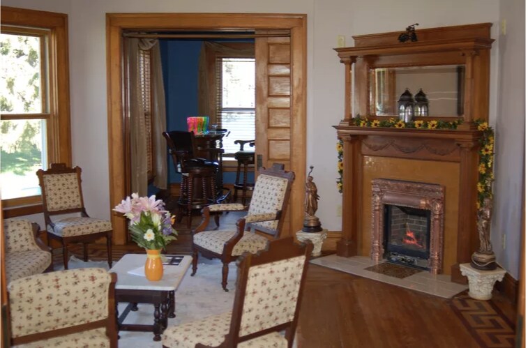 O Quarto Botânico é um quarto espaçoso e luxuoso com cama queen size com casa de banho privativa, lareira a gás e apresenta obras de arte botânica. Roupões de banho, comodidades de banho Beekman, roupa de cama nova e Wi-Fi atualizado. Lounge para hóspedes no segundo andar, onde terá acesso a um pequeno-almoço continental diário, café 24 horas por dia, 7 dias por semana, jogos de tabuleiro e copos.