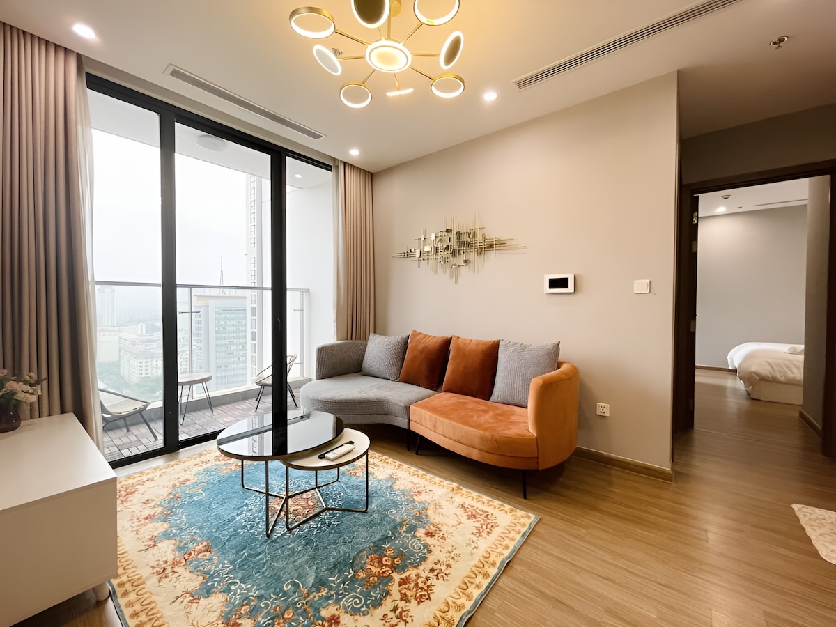 ◈ The Chain of modern apartments located in Hanoi's luxurious apartment complexes. Vinhomes D’Capitale one of the best place to live in Hanoi. Each apartment is tastefully decorated, sparkling clean and has a great city view, lake view from the best floors.We offer perfect accommodation for couples, families, bussines trip or single travelers. ◈ This brand new apartment has 2Bedrooms with spring mattresses, 1 private bathroom, living-room with comfy sofa for relax with a smart TV..