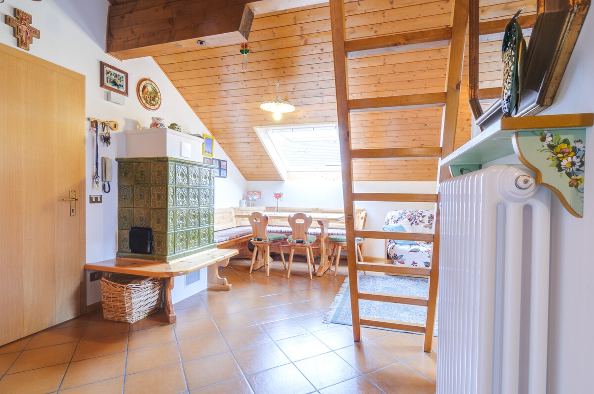 Belo sótão muito luminoso composto por uma grande área de estar virada para o sul com sofá-cama, cozinha, dois banheiros, um com banheira e outro com chuveiro, dois quartos, um de casal e outro com duas camas de solteiro (e berço de madeira para crianças pequenas). Todos os locais estão equipados com enormes velux. O sótão está localizado em uma área muito verde, muito tranquila, longe da estrada, perto da floresta e a menos de 200 metros das pistas de esqui Cermis. Código CIN: IT022050C2IXWDFRZB.