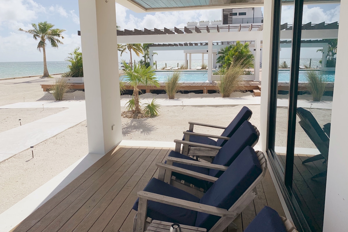 Experimente vistas deslumbrantes e desobstruídas para o mar do nosso condomínio à beira-mar. Este moderno apartamento de dois quartos e dois banheiros fica bem no Mar do Caribe, aninhado no coração do Blu Zen Resort em North Caye Caulker. A apenas 15 minutos a pé do The Split, com um serviço de transporte incluído para a Ilha Sul. Desfrute de comodidades convenientes, Wi-Fi, eletrodomésticos de aço inoxidável, etc... A espaçosa varanda oferece o local ideal para pegar o nascer do sol. Hospede-se no único resort de luxo de Caye Caulker para uma viagem inesquecível.