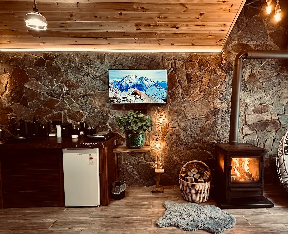 Bungalow com vista para a montanha, lareira e jacuzzi