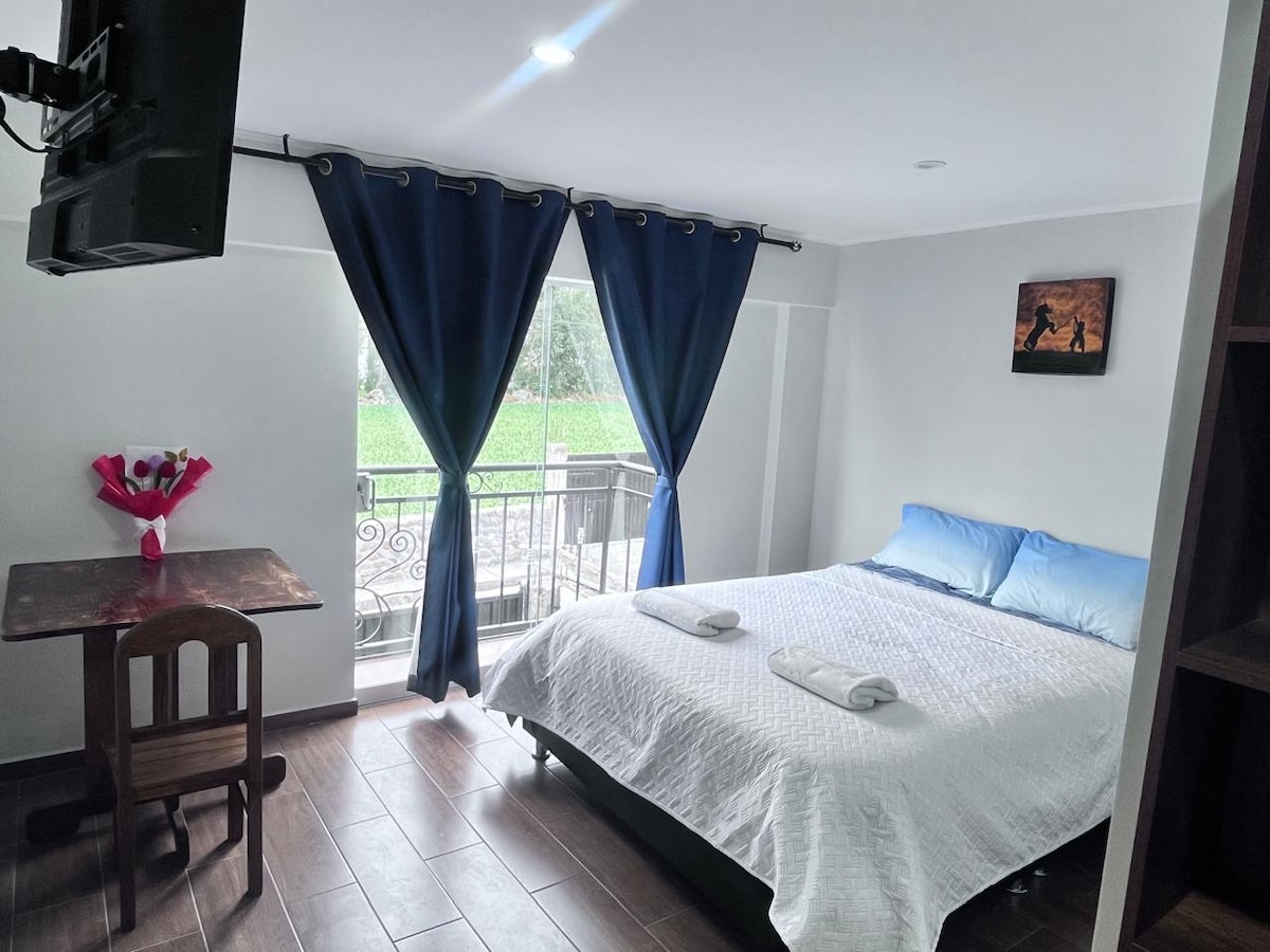 Habitacion con cama queen , baño privado,tv.