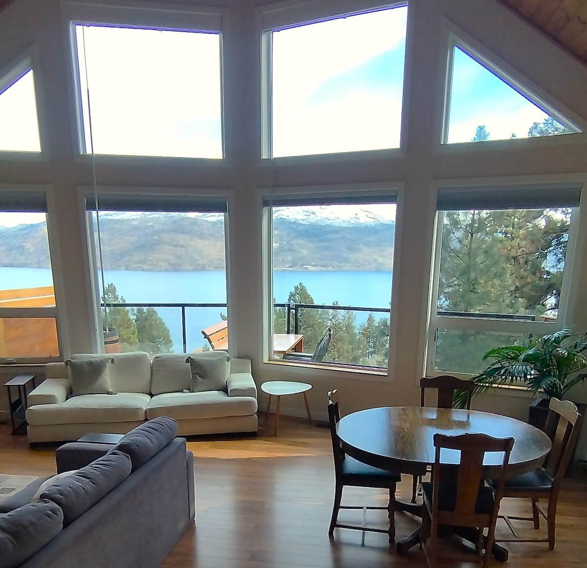 Localizado na pacata Upper Mission de Kelowna, a apenas 3 minutos da Adega Summerhill e a 20 minutos do centro da cidade. Desfrute de uma suite privada com vista para o lago e entrada separada, exclusivamente para o seu grupo (sem áreas partilhadas). Oferece 2 quartos com camas queen, uma nova casa de banho e uma espaçosa sala de estar com televisão, sofá-cama e mesa de jantar. Sem cozinha completa: micro-ondas, frigorífico e máquina de café fornecidos (sem fogão/máquina de lavar louça). Ao ar livre: banheira de hidromassagem, churrasqueira e deslumbrantes pores-do-sol no lago. Horário de silêncio após as 22h.