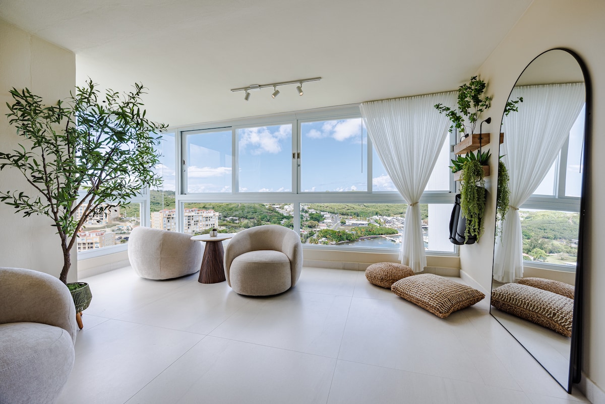 Este Airbnb é aconchegante e acolhedor, com móveis de madeira e tecidos macios que convidam ao relaxamento. A decoração é inspiradora, com detalhes únicos, obras de arte locais e plantas que criam um ambiente criativo. O espaço é relaxante, com um terraço cercado por uma vista espetacular da costa leste de Porto Rico, ideal para famílias, com uma cozinha funcional e áreas de lazer que fazem com que todos se sintam em casa. Além disso, o bairro é seguro, garantindo uma estadia tranquila e confortável.