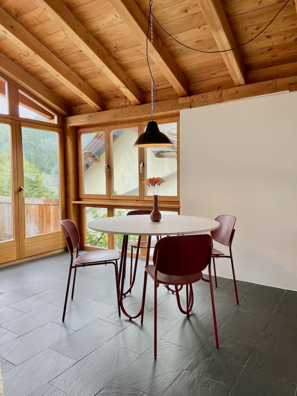 Eine gemütliche und stilvolle Wohnung mit schöner Aussicht auf die herrliche Berglandschaft wartet auf dich. Die Wohnung hat ganztags Sonne und verfügt über einen Gartensitzplatz. Die Küche ist voll ausgestattet, das Badezimmer verfügt über eine Badewanne und das Wohnzimmer lädt zum verweilen ein. Am Dorfrand gelegen und unweit von einer Bushaltestelle dient die Wohnung als ein idealer Ausgangspunkt für viele Ausflugsziele. Die Langlaufloipe ist in 3min zu Fuss erreichbar.