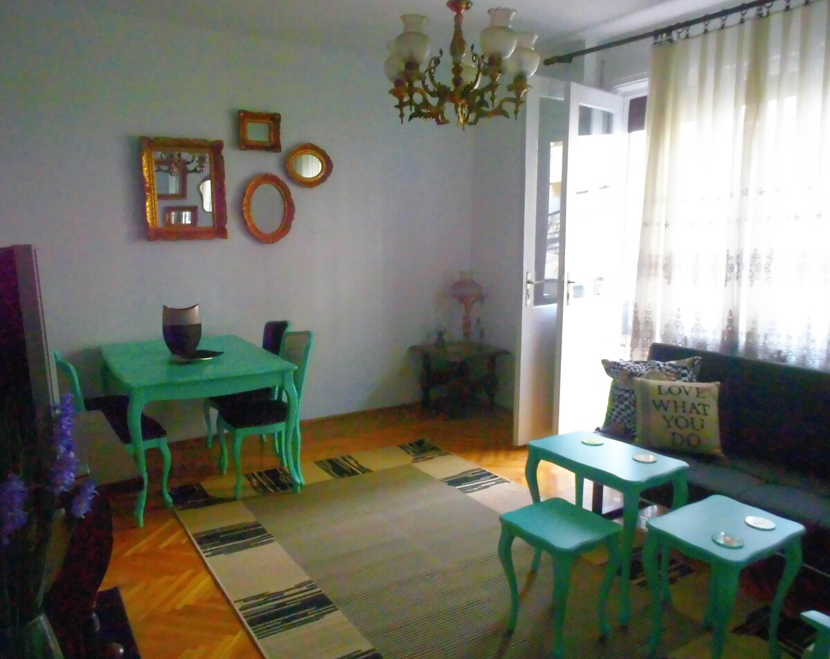 Bem-vindo! Fique com conforto e conveniência neste apartamento acolhedor e totalmente equipado. Localizado a 5-10 minutos a pé da praça principal da cidade. Desfrute de acesso Wi-Fi gratuito rápido, ar condicionado, uma cozinha totalmente equipada e tudo o que precisa para uma estadia relaxante. O apartamento está perfeitamente localizado para explorar a cidade. Encontrará um supermercado, bares, cafés, um hospital e uma farmácia 24 horas por dia, 7 dias por semana, a apenas 100 metros de distância. Atrações populares como a Montanha Vodno, Matka, o Antigo Bazar e a Fortaleza de Skopje também são de fácil acesso.