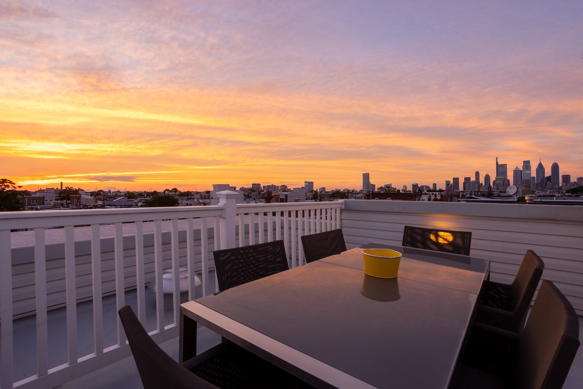 Minha moderna casa de 4 quartos tem tudo o que você precisa para sua viagem à Filadélfia. Desfrute de uma vista fantástica do terraço do Centro da Cidade e dos Estádios. Durante a sua estadia, você pode desfrutar de um porão totalmente acabado, um pátio fora da cozinha para desfrutar do seu café pela manhã e muito espaço para privacidade. Nosso Airbnb fica a uma curta distância de carro do Centro da cidade ou a uma curta caminhada da Avenida Passyunk para experimentar restaurantes e bares locais. Se você ama esportes ou shows da Filadélfia, estamos a 10 minutos ou menos de um Uber.