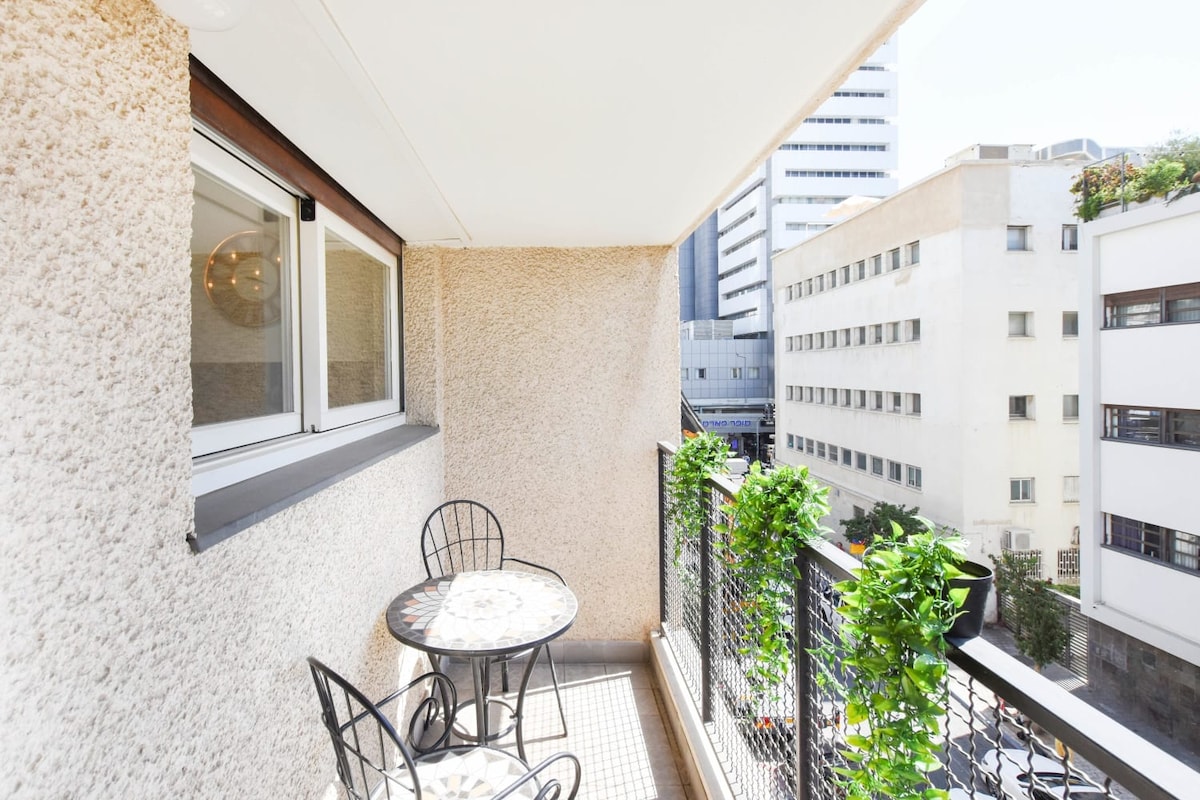 MELHOR LOCALIZAÇÃO! 2 min a pé do centro dizengof 60 M² , 7 min a pé da praia!!, grande, espaçoso, bem iluminado e limpo APARTAMENTO ENORME varanda, ar condicionado, 1sala de estar, 1 quarto, WI-FI, até 4 pessoas. 3D e 4ª pessoa é possível com extra. , rua tranquila no coração do tel-aviv!