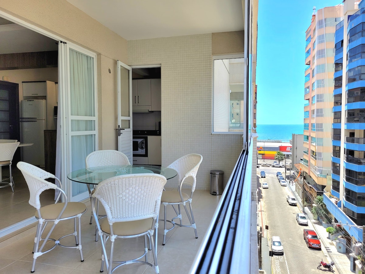 Lindo Apartamento a 30 metros da Praia, com Vista para o Mar e Cidade, amplo, ventilado, climatizado, equipado, REDE DE PROTEÇÃO nas janelas e na sacada.Sala de estar com Tv, Sala de Jantar com churrasqueira, Cozinha com espaço para refeição, espaços amplos e integrados permitindo interação entre os hóspedes. A Sacada tem vista para o Mar e cidade, com mesa e cadeiras, oferecendo momentos incríveis: tomar café, happy hour, trabalho. Ar condicionado nos quartos. 2 GARAGENS INDIVIDUAIS