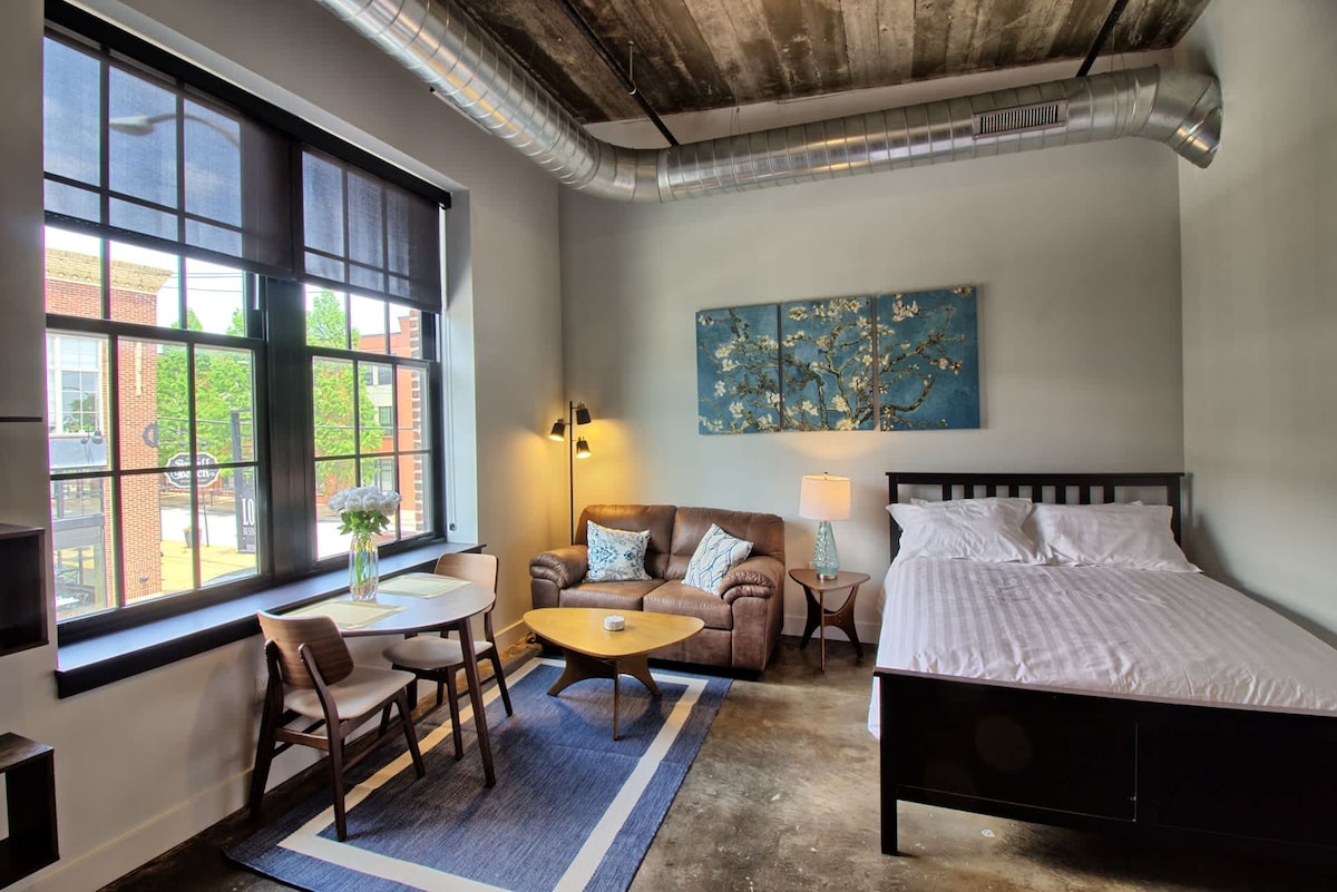 O Nash Loft é um estúdio minimalista deslumbrante com tetos de 3,65 metros, uma cozinha totalmente equipada com eletrodomésticos pretos inoxidáveis e bancadas de quartzo, um espaçoso closet, uma lavadora + secadora empilháveis, um banheiro de designer com acessórios pretos inoxidáveis e chuveiro de vidro sem moldura e janelas industriais de aço de 2,13 metros com vista para a rua arborizada e lojas abaixo. Situado ao longo da famosa Locust Street, no coração de Midtown, você estará a poucos passos da SLU, Wells Fargo, BJC e The Grove.