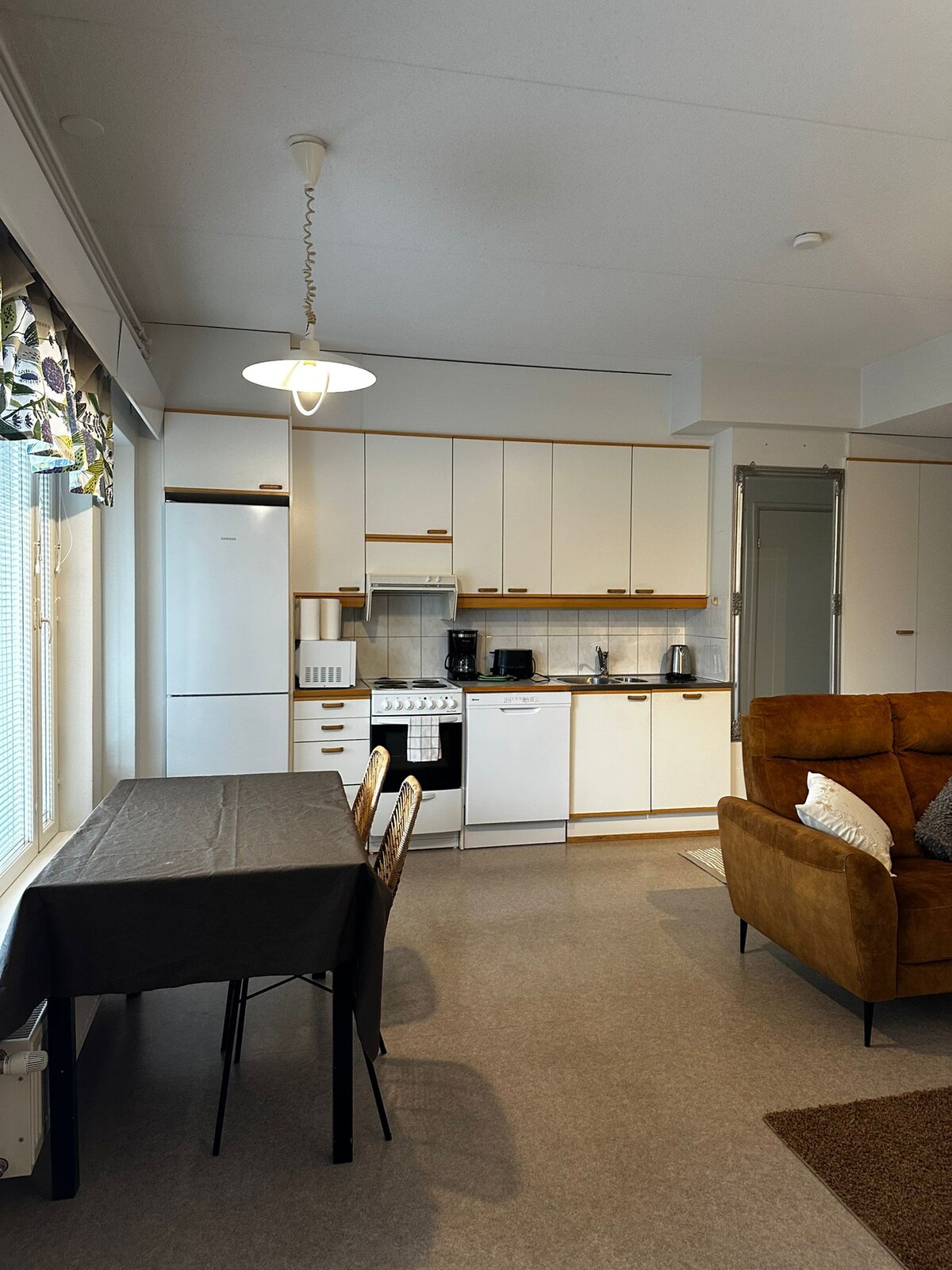 Renovado e mobilado com mobiliário novo de alta qualidade (2025) e equipamentos, este apartamento com sauna está localizado no coração de Kokkola. O apartamento tem ar condicionado. Varanda envidraçada e lugar de estacionamento ao lado da porta da frente. Acessível. Último andar de casa com elevador (3 quartos+k+ph+s). Iluminação ambiente ajustável em todos os quartos. Há a vida noturna e os restaurantes de Kokkola e as oportunidades desportivas de Suntinvarre nas proximidades. Apesar da sua localização central, o lugar é tranquilo.