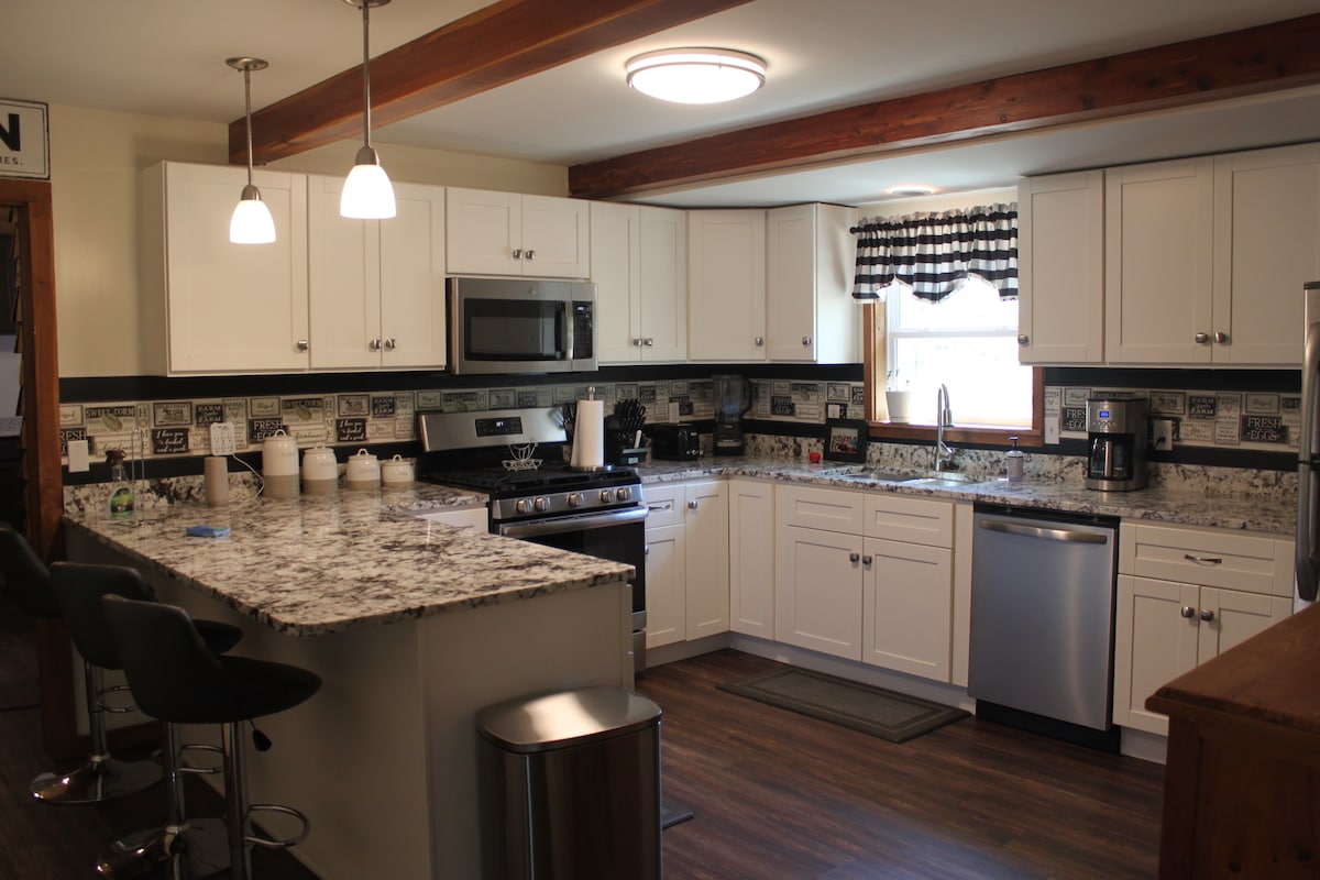 A melhor vida no lago! Esta casa é de construção nova, construída em 2019. Aproveite nossa casa como se fosse sua. Localizado fora de Little Nose Creek no Lago Weiss, estamos verdadeiramente no centro de qualquer lugar que você gostaria de estar no lago. Relaxe no grande deck coberto e aproveite o pôr do sol. É uma configuração de 3 quartos, 2 banheiros completos. O quarto principal tem uma cama king, o quarto de hóspedes tem uma cama queen e o quarto do meio contém uma cama full e uma cama de solteiro. Futon na sala de estar. Desfrute dos balcões de granito e dos eletrodomésticos mais recentes na cozinha.