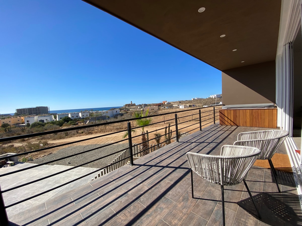 Novo apartamento com vista direta para a pausa para o surf de Cerritos. A localização é IRREAL. Caminhe até tantos restaurantes fantásticos. Desfrute da sua banheira de hidromassagem privada no pát Relaxe no sofá confortável depois de um longo dia na praia. Aguarde a piscina idílica. Decorado com um estilo Baja simples, mas contemporâneo. Escolha 2 camas king ou 1 cama king e 2 camas individuais. Ambos os quartos têm casas de banho privativas. Sofá-cama bónus para um espaço adicional para dormir! Unidade de 2º andar, com elevador! A sua escapadela de férias perfeita!!!!!