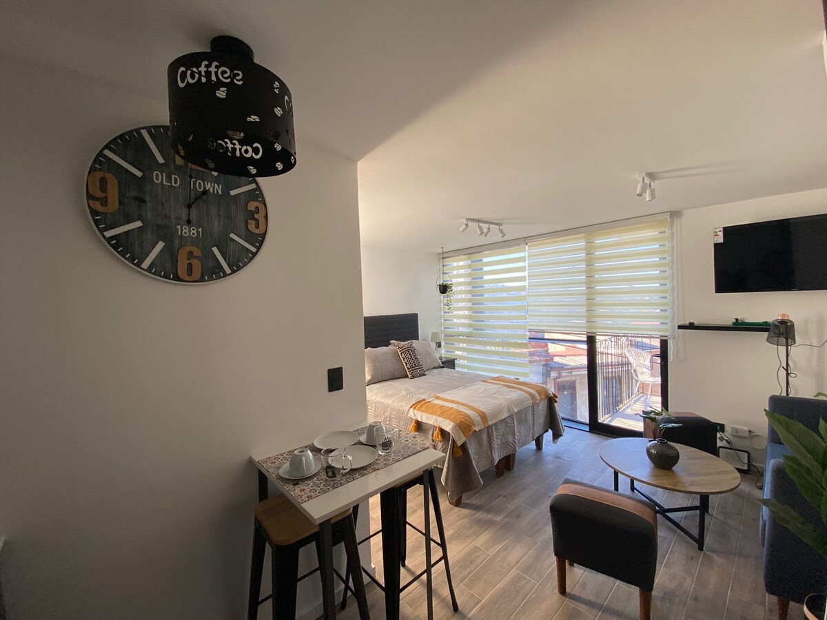Loft confortável, acolhedor, amplo e luminoso. Tem um terraço e uma vista parcial para a baía. Foi concebido para que as pessoas relaxem e possam desfrutar da plenitude e intimidade do espaço. Localizado a 100 metros do centro cívico de Valparaíso, onde há comércio e locomoção de fácil acesso. Fica a 10 minutos a pé da estação de metro Bellavista, a 7 minutos a pé do sopé do Cerro Alegre e Concepción e a 2 minutos a pé do sopé do Cerro Bellavista.