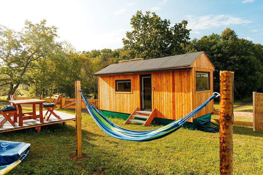 ✨ Glamping isolado de luxo no coração das Montanhas Lusatianas – Cvikov 🏕️🌲🐾 Desfrute de uma estadia inesquecível numa confortável casa de glamping isolada, onde o conforto de um alojamento moderno se une à paz e beleza das Montanhas Lusatianas! 🏡❄️☀️ ✅ Animais de estimação são bem-vindos! 🐶🐾 (por favor, avise-nos com antecedência) Área de Paisagem ✅ Protegida das Montanhas Lusatianas – belas florestas, rochas de arenito e vistas deslumbrantes 🌳🏔️ Cozinha ✅ totalmente equipada: máquina de café☕ 🧊, frigorífico e placa de cozinha. 🍳 Casa de banho✅ moderna: chuveiro🚿, sanita com autoclismo🚽, água quente.