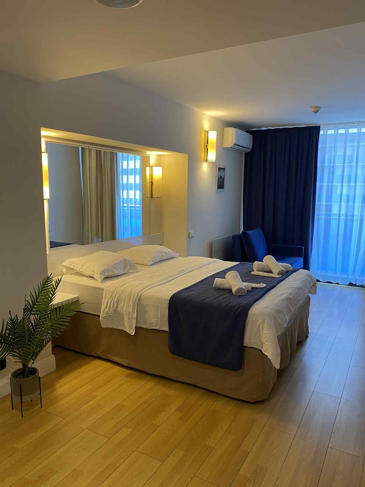 Orbi City está localizado na primeira linha do mar, a apenas 50 metros da praia. Delicie-se com as vistas notáveis do mar, da fortaleza de Gonio e até mesmo das montanhas turcas do meu apartamento, localizado no 42º andar do bloco C da cidade de Orbi. Tem uma área de jantar com uma Smart TV. Wi-Fi gratuito e ar condicionado estão disponíveis. Há também uma cozinha, equipada com micro-ondas, chaleira elétrica e geladeira. Eu forneço roupa de cama limpa. O Dolphinarium fica a 1,3 km de distância. A recepção ajuda você 24 horas.