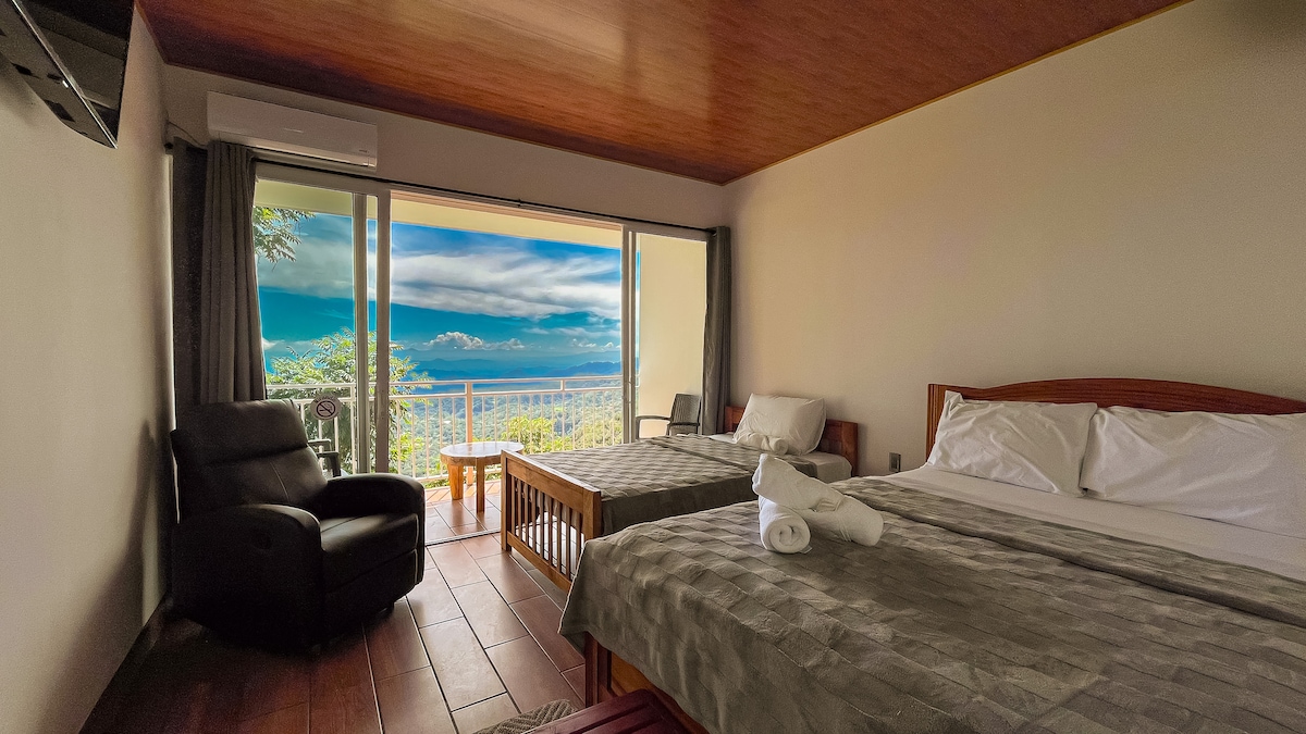 Os nossos quartos em Guazapacafé oferecem conforto e tranquilidade num ambiente acolhedor. Têm camas grandes, ar condicionado, um sofá e detalhes decorativos que transmitem calor. O espaço é complementado por terraços rodeados por redes e áreas verdes ideais para relaxar. Desfrute de um ambiente relaxante, com o equilíbrio perfeito entre o rústico e o moderno, concebido para o seu descanso e ligação com a natureza.