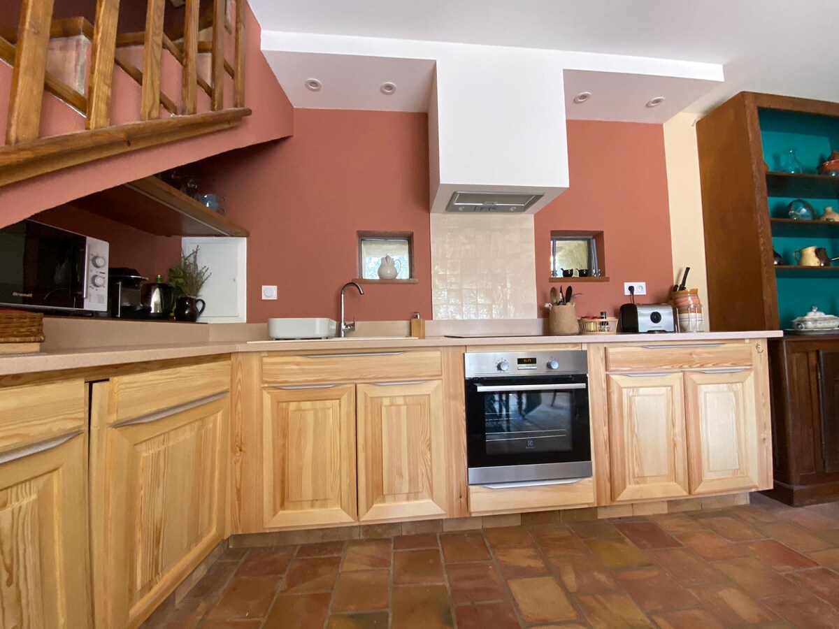 Propriedade turística mobilada classificada 4 *: 65m2 num ambiente verde. O terraço privado tem vista para uma floresta de carvalhos e pinheiros com vista para as colinas. Um quarto com uma cama queen (qualidade de hotel) e uma casa de banho privativa + uma cozinha aberta totalmente equipada com vista para uma sala de estar com 2 sofás-cama individuais. Comodidade completa, piscina partilhada com os proprietários da casa Teremos todo o gosto em discutir os melhores lugares da região, se os hóspedes quiserem.