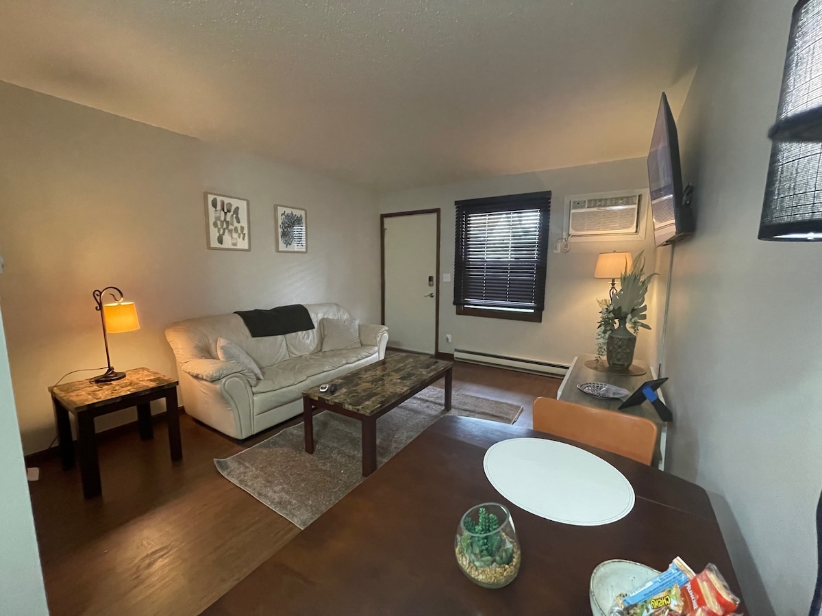 Apartamento estúdio luminoso, alegre e relaxante no centro da cidade. Bairro tranquilo cheio de charme. Curta caminhada até o ponto de ônibus e Clark Park. Perfeito para sua próxima viagem de fim de semana ou de negócios! 2 milhas do Memorial Stadium & State Farm Center Este é um espaço pequeno, e o chuveiro é dimensionado de acordo. O colchão tamanho queen é macio e luxuoso, mas se você preferir um colchão firme, esta não é a cama para você.