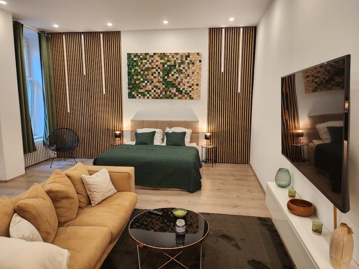 Bem-vindo (a) ao nosso apartamento projetado exclusivamente em Kurfürstendamm! Mergulhe na atmosfera pulsante de Berlim e aproveite a sua estadia no nosso elegante apartamento, que impressiona com o seu design único. Idealmente localizado no famoso Kurfürstendamm, está a poucos passos do KaDeWe e das melhores lojas, restaurantes e cafés. Além disso, pode chegar ao centro de exposições da ICC em poucos minutos de carro - perfeito para viajantes de negócios e visitantes de feiras!