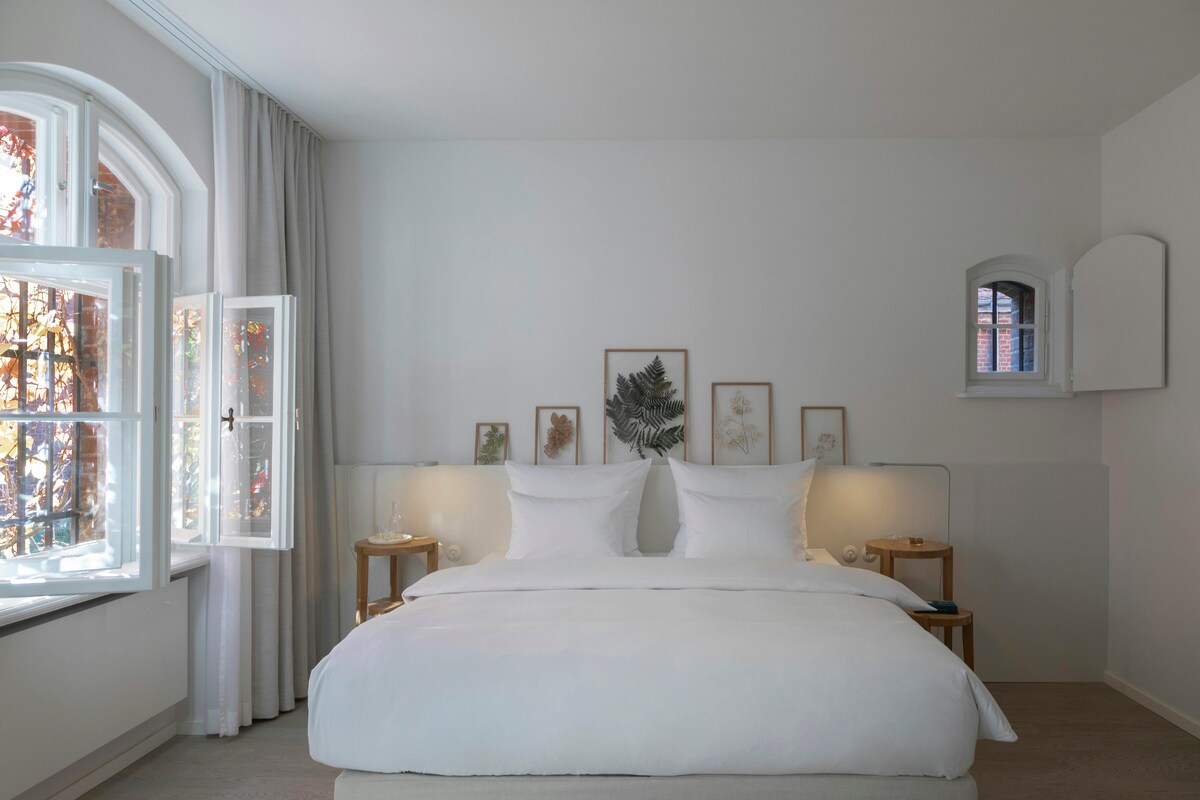 Alle Classic Zimmer (16 qm) bieten ein komfortables Kingsize-Bett und vergrößerte Fenster mit Blick auf den ruhigen Innenhof. Jedes Zimmer hat einzigartige Merkmale, sodass kein Zimmer wie das andere ist. Genieße den luxuriösen Komfort unserer COCO-MAT Betten, handgefertigt aus Naturmaterialien. Wunderbar ausgeschlafen lassen sich das Wilmina und die Stadt erkunden.