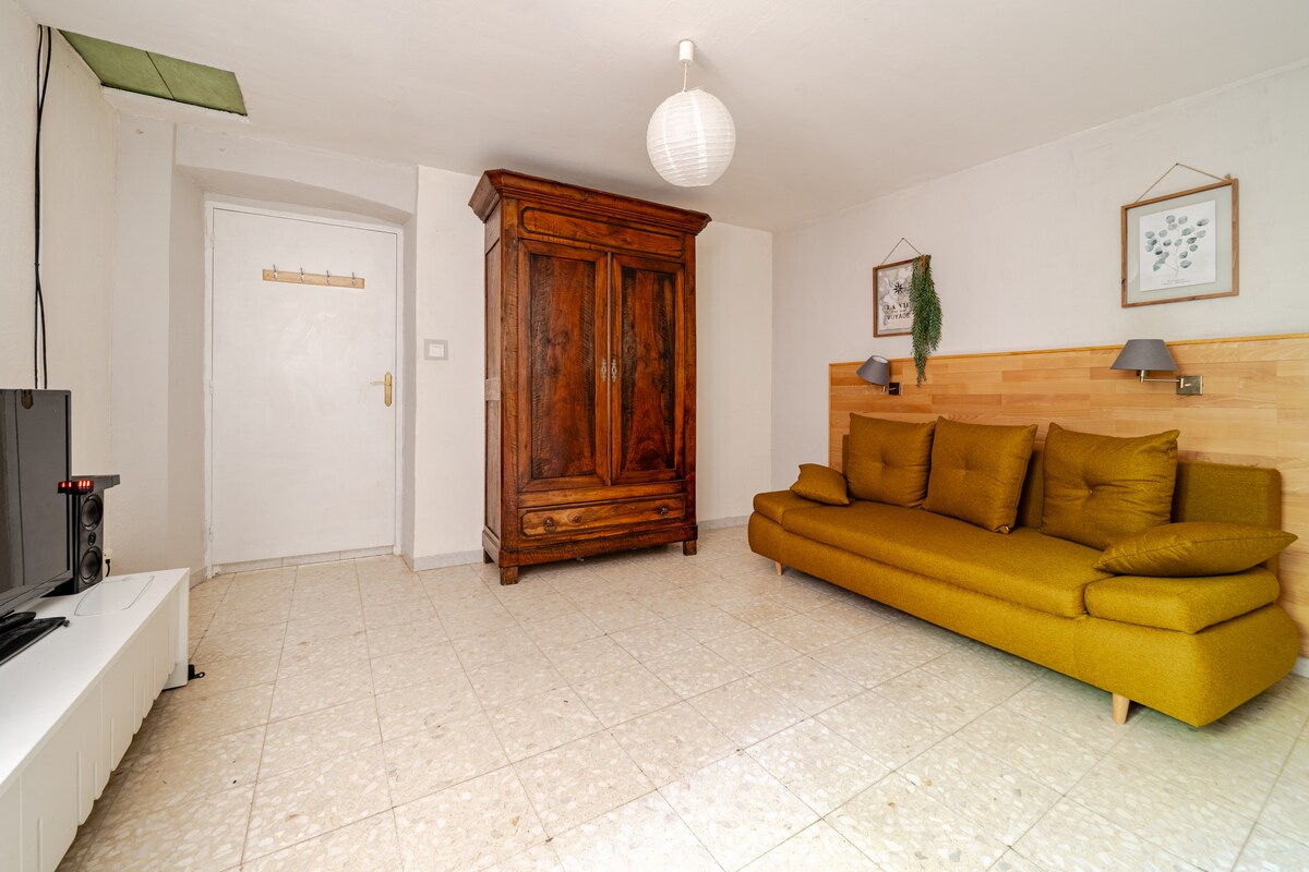 Venha relaxar na Muyre, em plena natureza, embalado(a) pelo canto das cigarras (às vezes também pelo som do burro ou do galo) e pelo pio do coruja... Mas você terá que subir uma escada de moinho para ir dormir em um mezanino (1 ou 2 lugares), a menos que prefira dormir no confortável sofá (1 lugar) do quarto. Acesso à piscina (em horário compartilhado) e possibilidade de acesso a pé às trilhas e ao rio a partir da casa...