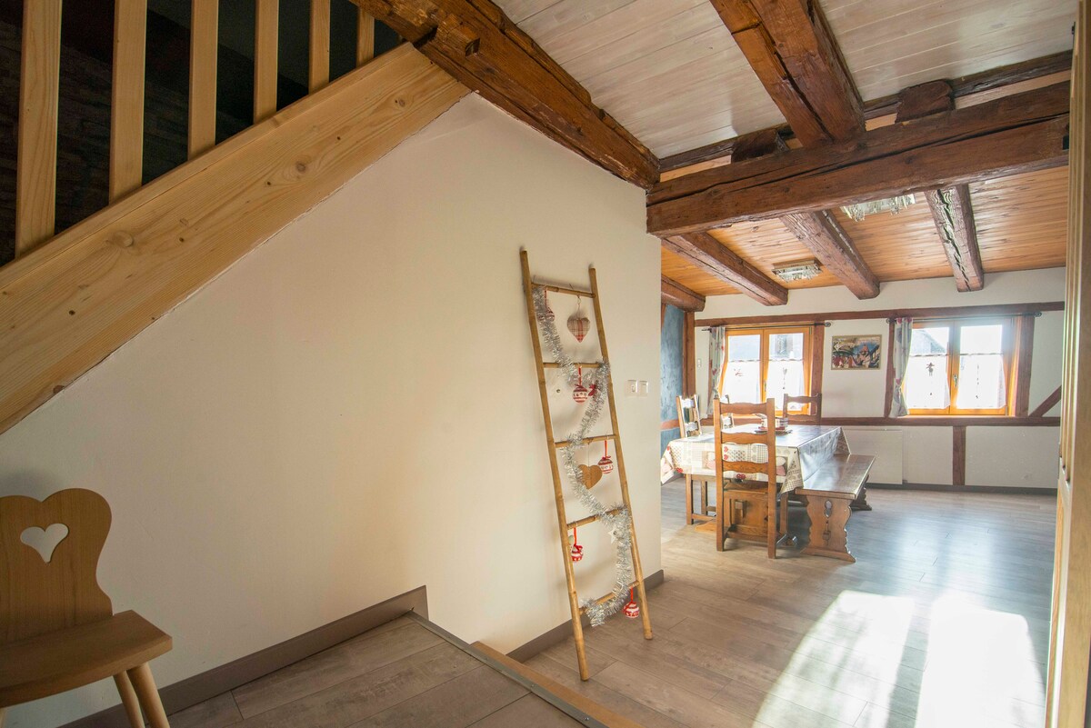 Localizado numa aldeia pitoresca na rota dos vinhos, a 45 minutos de Estrasburgo e a 20 minutos de Colmar, o Europa-park ao pé de Haut-koenigsbourg, Monkey Mountain e Eagles Flying. Venha descobrir no 1 .º andar de uma casa da Alsácia, este apartamento duplex com ar condicionado. Incluindo: 1 sala de estar TV área de jantar, 2 quartos (1 cama gd, 2 camas), casa de banho e sanita separada, roupa de cama e toalhas fornecidas.