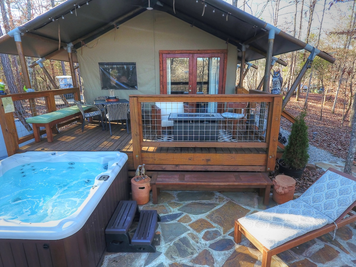 Rhondaposa, 1 quarto Glamp, banheira de hidromassagem, pátio de pedra