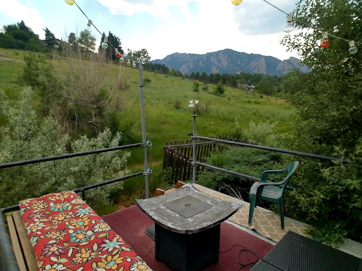Um estúdio isolado com uma cozinha totalmente equipada e um quintal privado, aninhado pelas montanhas ao lado de Eben G. Fine Park e Boulder Creek. Nas noites de primavera e verão, pode ouvir Boulder Creek e desfrutar da brisa fresca do desfiladeiro. Trilhos em 3 direções. Caminhada até ao Pearl Street Mall, CU e Chautauqua.