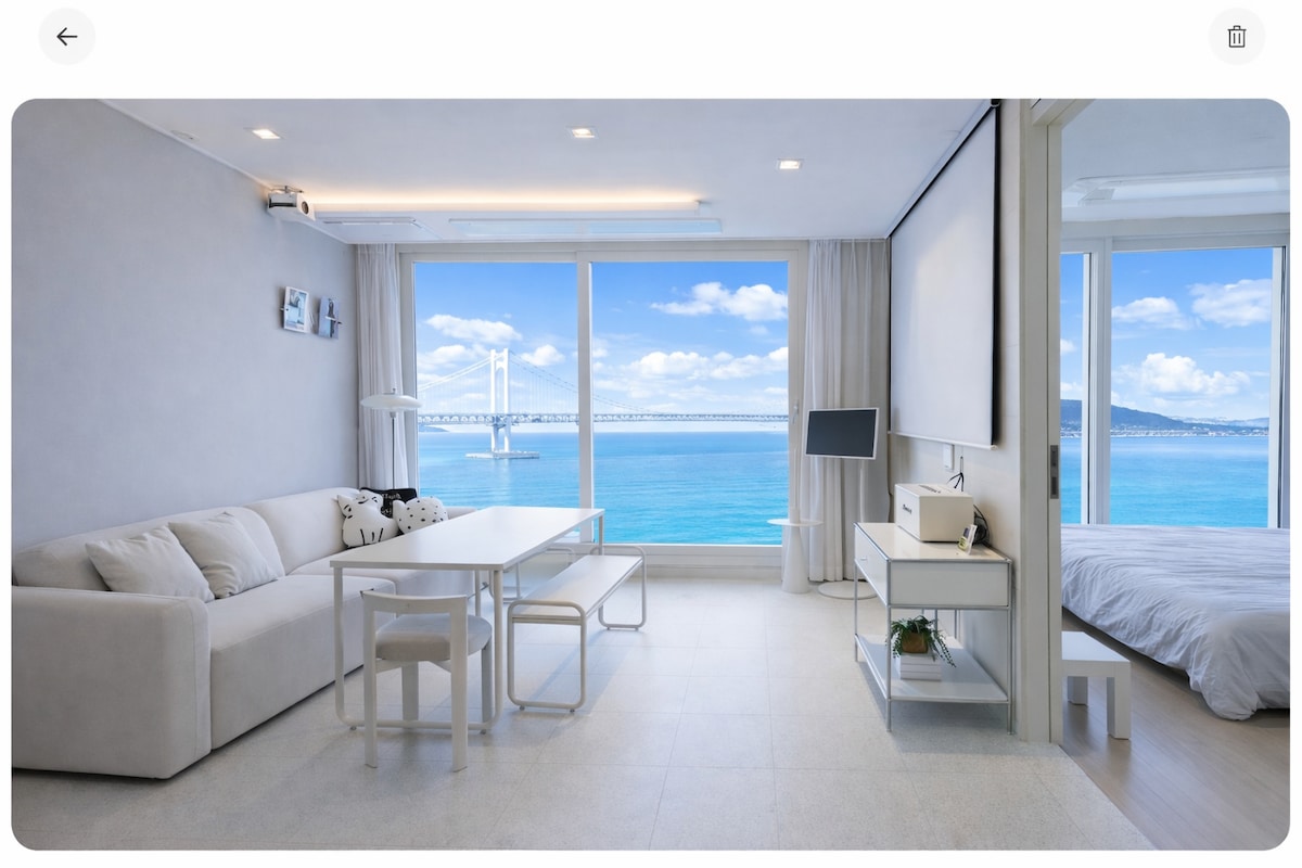 🌈 Busan Gwangan MOODRIAN Residência com vista para o mar da Ponte Gwangan que completa um estilo de vida premium Gwangalli Moodrian, localizado na Praia de Gwangalli, Busan Um espaço digno adequado para todas as viagens em família, de casais e de amigos, O panorama dinâmico da Ponte Gwangan a desdobrar-se diante dos seus olhos Este é um alojamento com vista para o mar que pode ser visto da frente do quarto e da sala de estar. ✨ Vista para o mar · Vista para a cidade · Vista para a ponte Gwangan num ecrã Um novo apartamento raro em Gwangalli e uma disposição espaçosa com uma estrutura de dois quartos de 20 metros quadrados Conforto caseiro com comodidades premium e gestão atenciosa. 🏡 Interior moderno e estável com comodidades de luxo, De estadias curtas a estadias longas, oferecemos o melhor conforto. Mantemo-lo sempre limpo e arrumado com a gestão cuidadosa do anfitrião. O conforto é como um hotel, O coração está mais perto. 😊 Pequenos momentos em Mudrian Espero que tenha uma boa memória. 💛