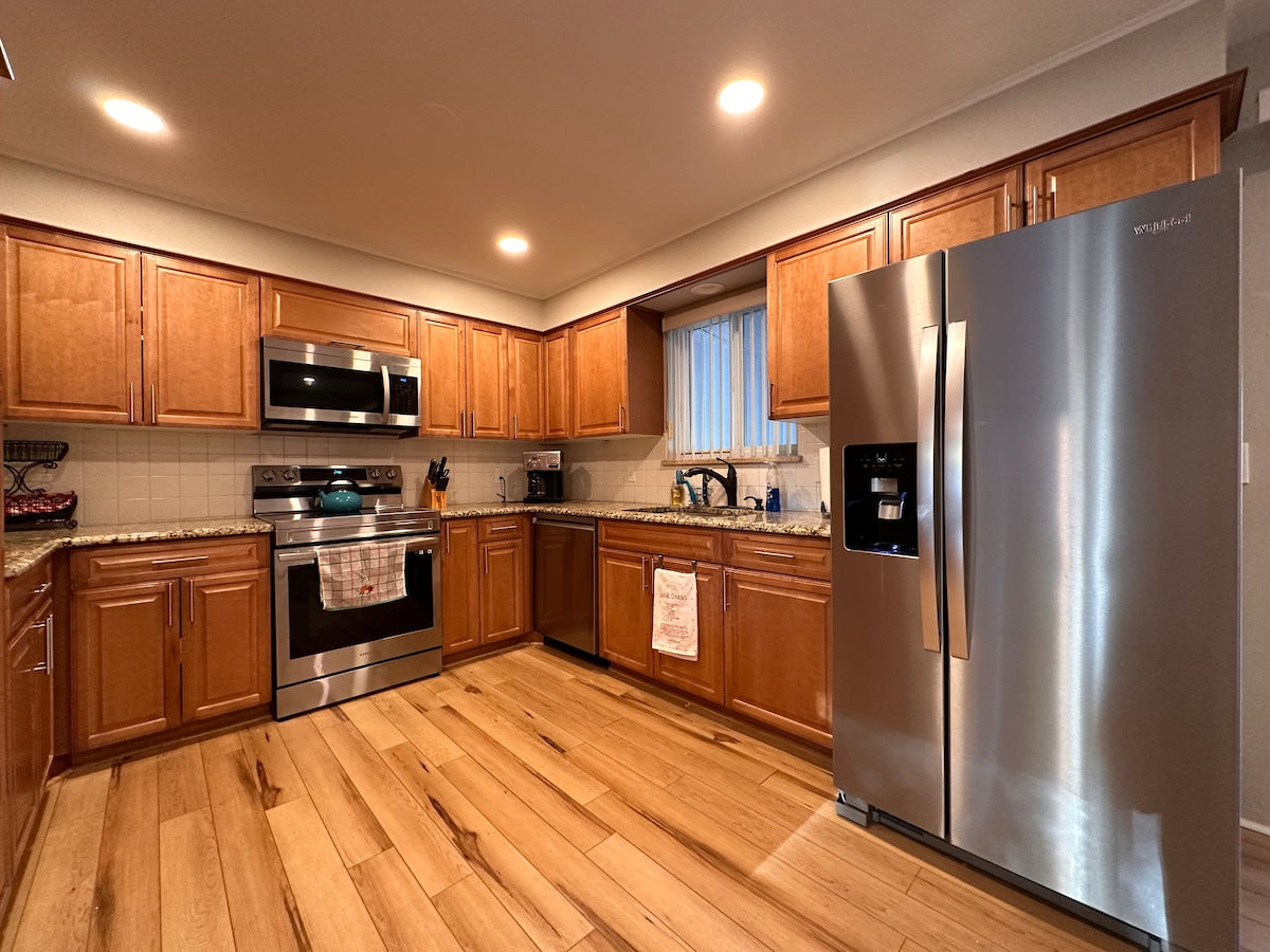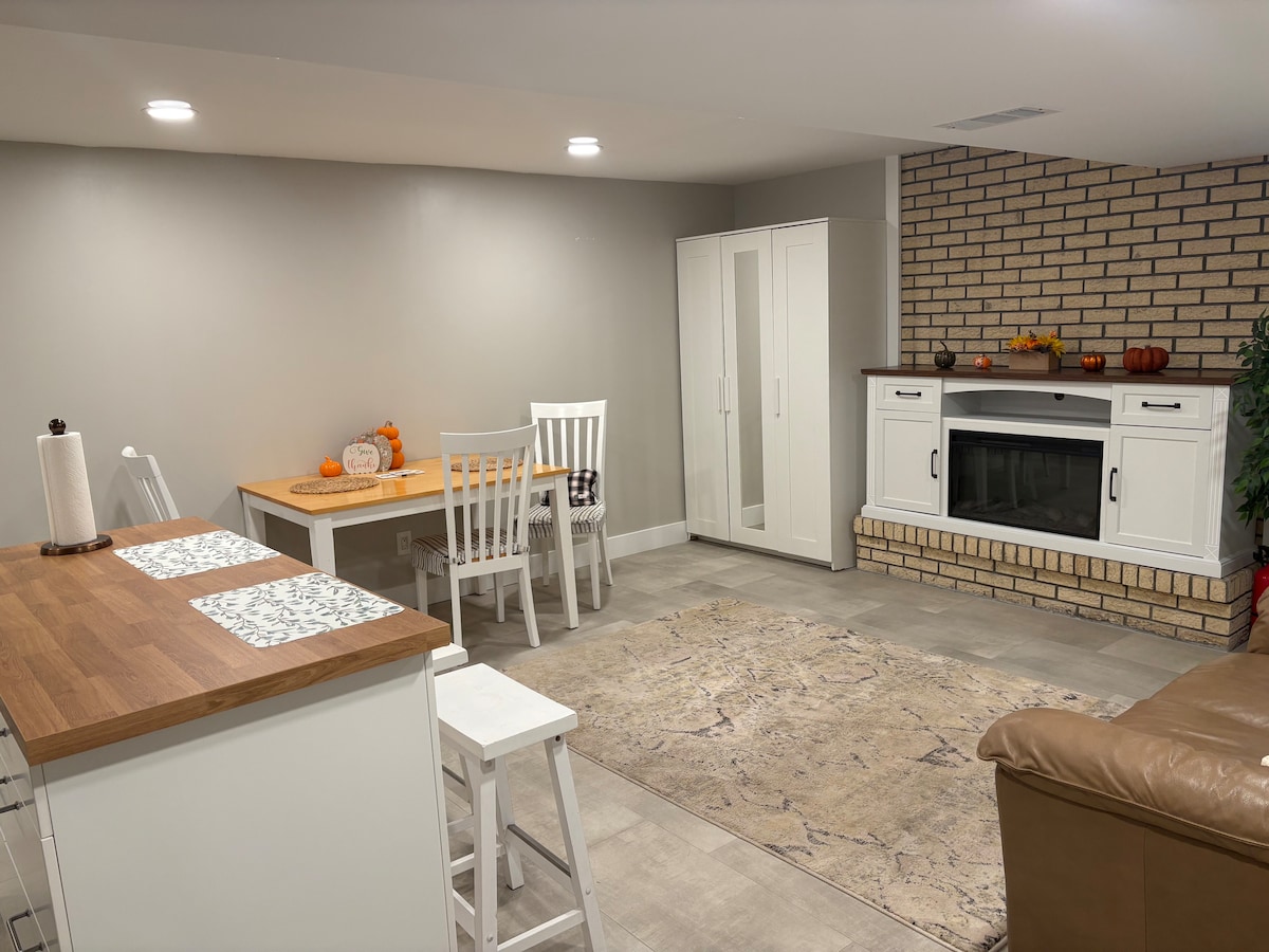 • Grande unidade PRIVADA no piso inferior em casa duplex - ideal para famílias, casais e grupos de amigos • Duas casas de banho de azulejos de mármore com lavabos duplos, banheira de imersão e dois chuveiros • A 10-15 minutos do centro da cidade! Perto da autoestrada principal (I-25) • Kitchenette abastecida • 2 televisões grandes com acesso gratuito à Netflix, HBO, Hulu, Apple TV+, etc. • Entrada privada com entrada sem chave • Grande quintal e pátio com lareira a gás e grelhador. • É permitido fumar lá fora / 420 amigável • Os proprietários vivem no andar de cima numa unidade separada