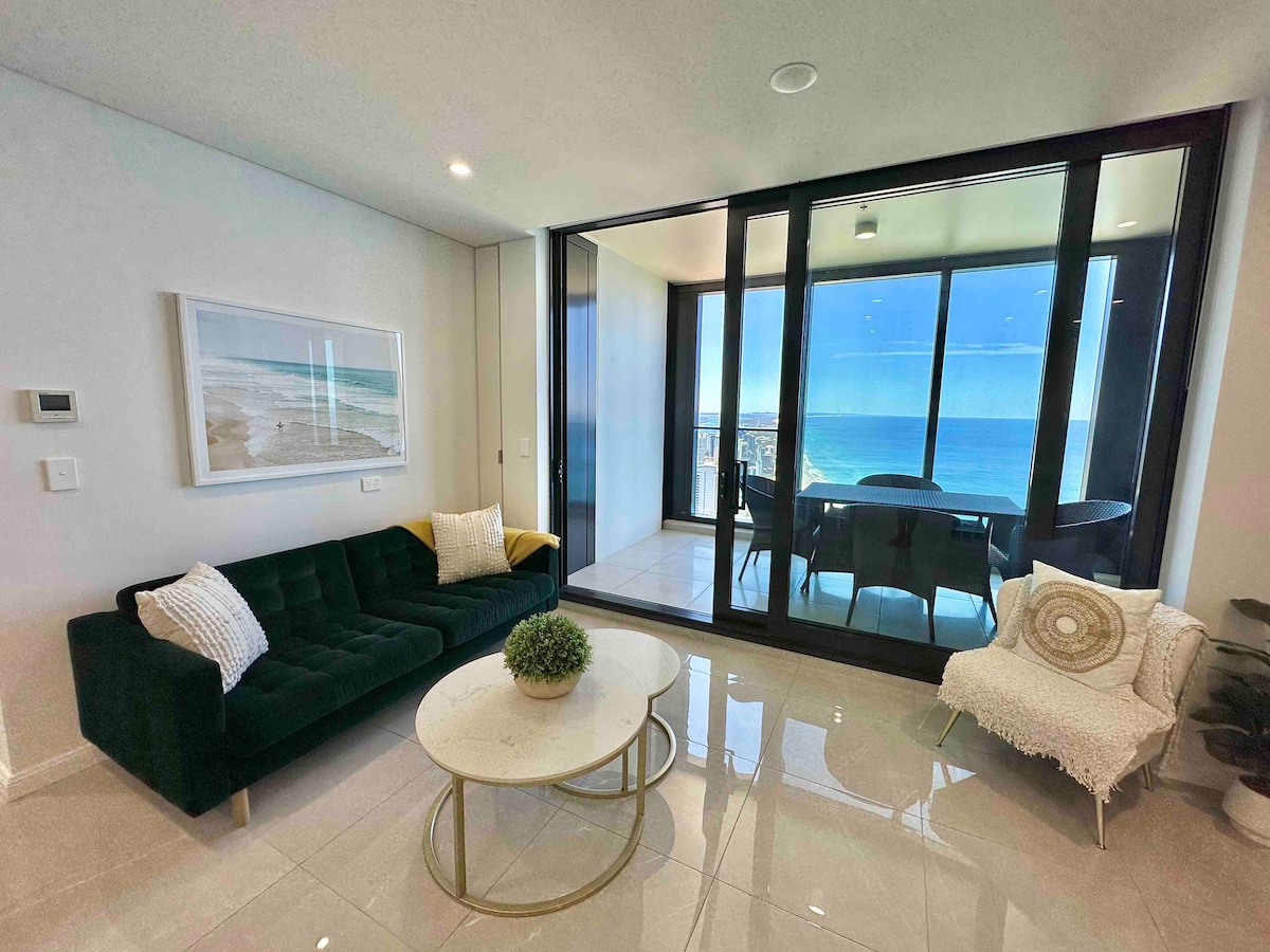 💝 Porque vai adorar 📍 Localização privilegiada na Esplanada: a poucos passos da praia, da Cavill Avenue, de lojas e da vida noturna dos surfistas. 🌅 Vistas inigualáveis para o mar – Veja o nascer do sol sobre o mar a partir da sua varanda privada no 67.º andar 🛏️ 2 quartos com conforto de estilo hoteleiro – Inclui uma suite master com roupão e casa de banho privativa | Ar condicionado em todo o espaço 🌿 Varanda privada com vidro – Saboreie o seu café da manhã acima do horizonte ou descontraia ao pôr do sol 🏊 Instalações de resort de 5 estrelas – ginásio, sauna e terraço exterior (Nível 33)