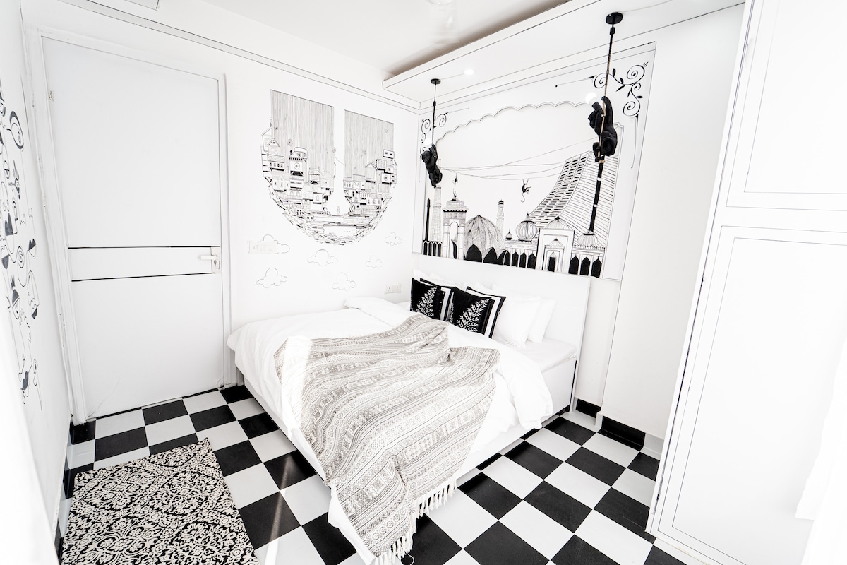 Situado em meio à movimentada Golf Course Road, mas oferecendo uma vista serena da floresta de Aravali, este loft é um verdadeiro oásis urbano. Entre em nossa espaçosa casa com uma área de estar, área de jantar aconchegante e cozinha anexa. Os quartos oferecem charme rústico, camas confortáveis, amplo espaço de armazenamento e acesso a terraços tranquilos. Um único banheiro está totalmente equipado. Desfrute de vistas de dois grandes terraços — um da cidade e o outro da serena Floresta de Aravali, com um pátio.