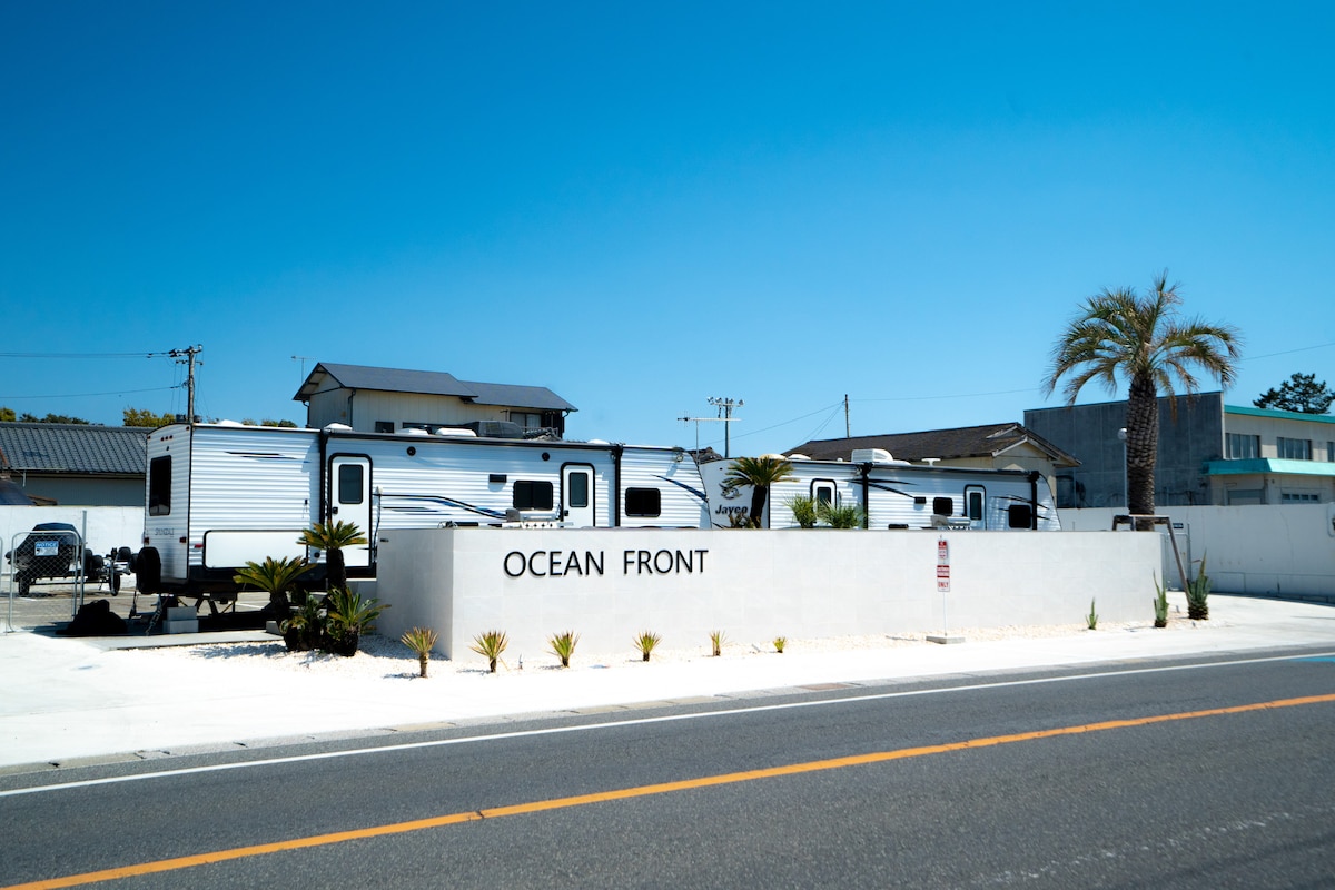 < Com sauna e fogueira!Limitado a 2 hóspedes > * [TRAILER-B] tem um barco quente ao ar livre, mas [TRAILER-A] tem uma função de banheira de hidromassagem com uma jacuzzi de bolhas.A roupa de banho é obrigatória se a usar. A 80 minutos de carro de Tóquio.Uma instalação de glamping nasceu ao longo da costa de Tateyama Hojo em Minamiboso. Esta instalação de alojamento usa um reboque americano de alto grau e tem um deck de cerca de 20 tapetes de tatame (32 m ²) em frente ao mar. Pode desfrutar de churrasco e banhos de sol enquanto sente a brisa do mar com vista para o mar. Também pode trazer as suas refeições e bebidas e desfrutar da churrasqueira no terraço. Delicie-se com o luxo enquanto contempla o oceano no terraço. < Detalhes do Plano > * Este plano inclui uma sauna e uma fogueira com desconto. * Se estiverem previstos ventos fortes com uma velocidade de vento superior a 5 metros no dia da sua estadia, as fogueiras não podem ser usadas. Limitado a 2 pessoas! Pode desfrutar de uma sauna num fogão rugoso feito por Harvia! Depois do banho de água, pode divertir-se a ouvir o som do oceano no terraço.