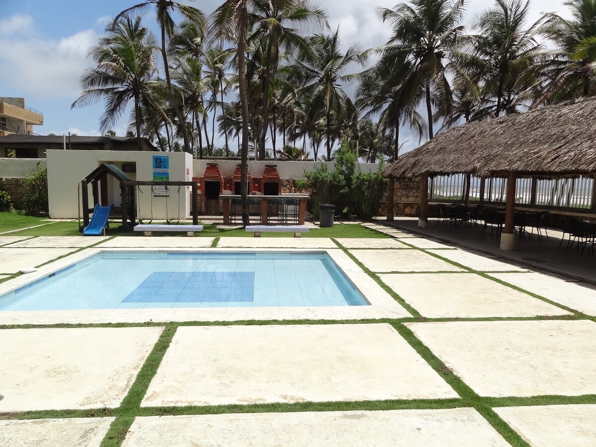 Apartamento no Conjunto Cocotero Mar II Capacidade: 6 pessoas (1 cama de casal + 4 sofás-cama). Tem 2 casas de banho, cozinha equipada (frigorífico, micro-ondas, forno, liquidificador, máquina de café, etc.), ar condicionado central, Wi-Fi, 2 televisões com Netflix e Alexa. Poço de água e aquecedor de água elétrico. Conjunto: desfrute de uma piscina, jacuzzi, parque infantil, espreguiçadeiras e acesso direto à praia. Segurança 24/7. Estacionamento 1/P. Pulseira de 5 USD por pessoa Check-in: 14h, Check-out: 12h