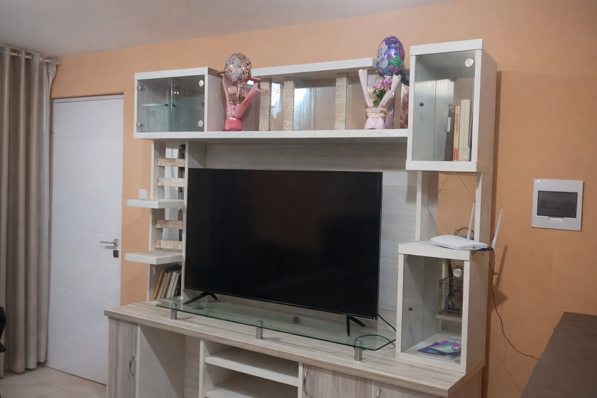 Podríamos hablarte de lo bonito que es este porche en la ciudad de Chiclayo, de lo bello que te parecerá el diseño de su arquitectura. Ubicado en un quinto piso, cuenta con cama queen y televisión en la habitación principal. Tendrás una placentera estadía con una hermosa terraza con vista a la ciudad para ver un bello atardecer.