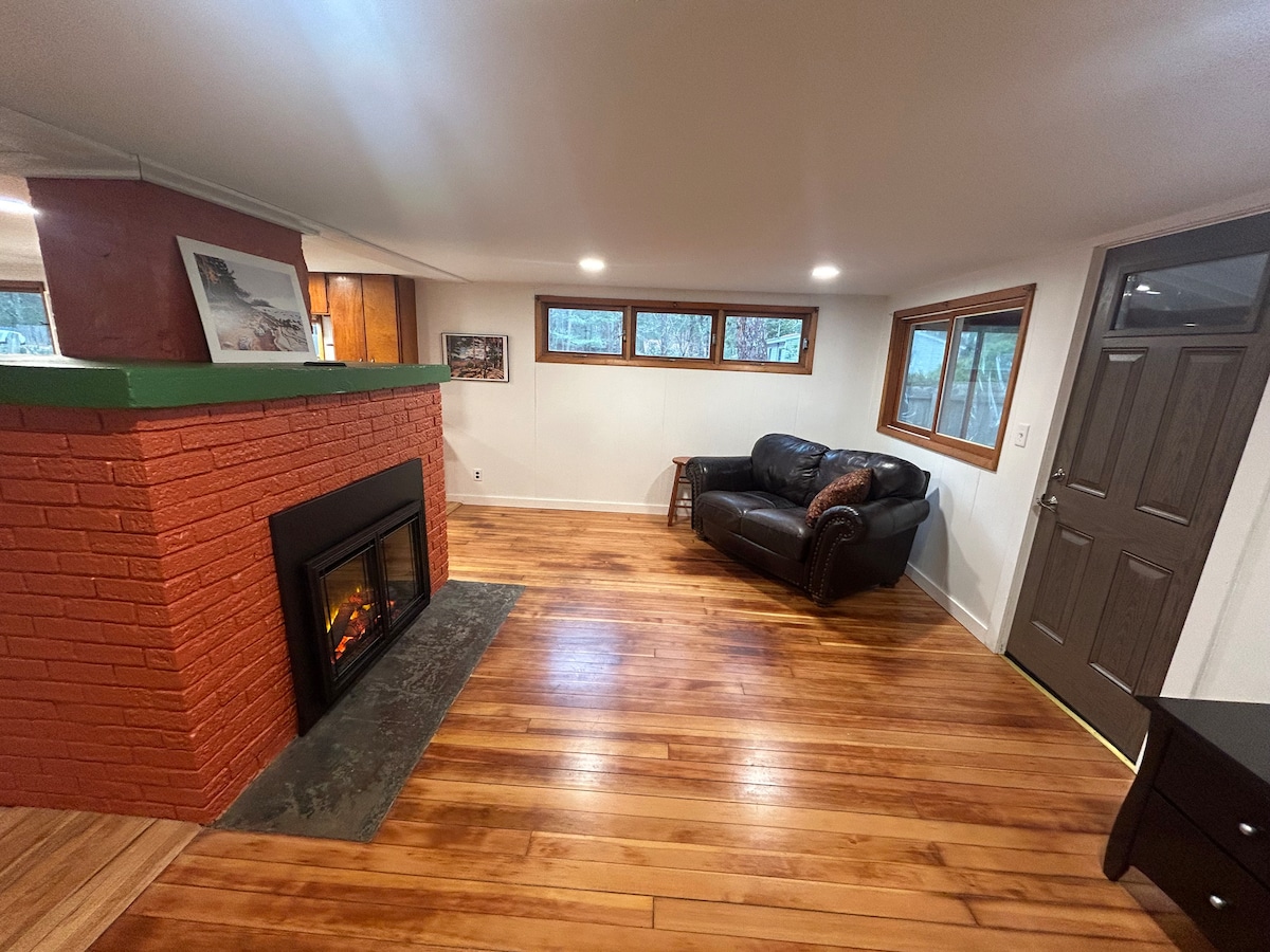 Cabana de madeira personalizada na floresta a apenas 15 minutos do centro de Marquette. Área tranquila, mas perto o suficiente para desfrutar de lojas, restaurantes e praias. Ótima vista do Lago Kawbawgam do pátio (sem acesso ao lago). 40 minutos de carro até Pictured Rocks. Fogueira no quintal e uma lareira na sala de estar disponíveis para uso. O nível inferior tem um bar com TV e sala de jogos com mesa de pingue-pongue e jogo de dardos. Espaço perfeito para famílias e ótimo para motociclistas de neve!