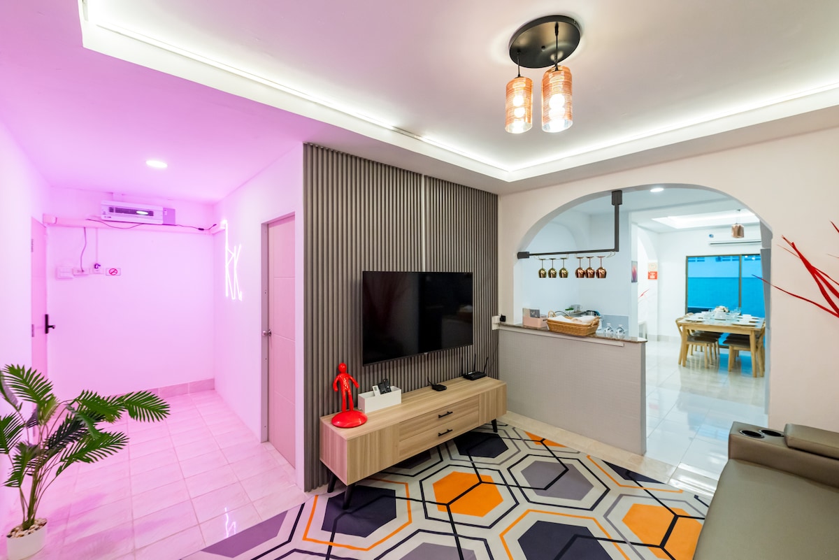 Moradia com piscina privada de 2 quartos de fuga e retiro (1 quarto trancado, partilhado pelo proprietário), ideal para uma estadia relaxante ou divertida. • Piscina privada e jardim • Sala de jogos com simulador de corrida + TV de cinema de 120" • Cozinha completa para refeições caseiras • Churrasqueira no jardim • A 5 minutos a pé da praia • A uma curta distância a pé do Miradouro e do Templo de Buda • A 5 minutos do cais de Bali Hai • 2 minutos a pé até 7-11 • 5 min de táxi para Walking Street • Rodeado por restaurantes, cafés e bares locais • Aceita animais de estimação Perfeita para as suas férias