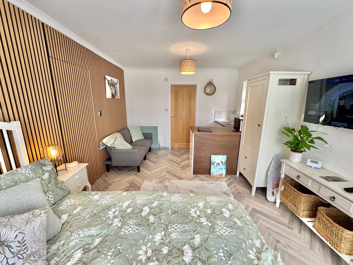 Estúdio com jardim em Mudeford com casa de banho e cozinha, área de jardim própria. Uma nova cama king-size e decoração de alto padrão. Idealmente localizado para aceder a Avon Beach e ao porto em Mudeford, ou à praia de Mudeford Spit e Hengistbury Head. Também em frente a Stanpit Marsh SSSI e Reserva Natural (2 minutos) ou na histórica cidade de Christchurch: 5 minutos de carro ou 15 minutos a pé. A New Forest (Lymington, Beaulieu, Brockenhurst) fica perto. Bournemouth também.