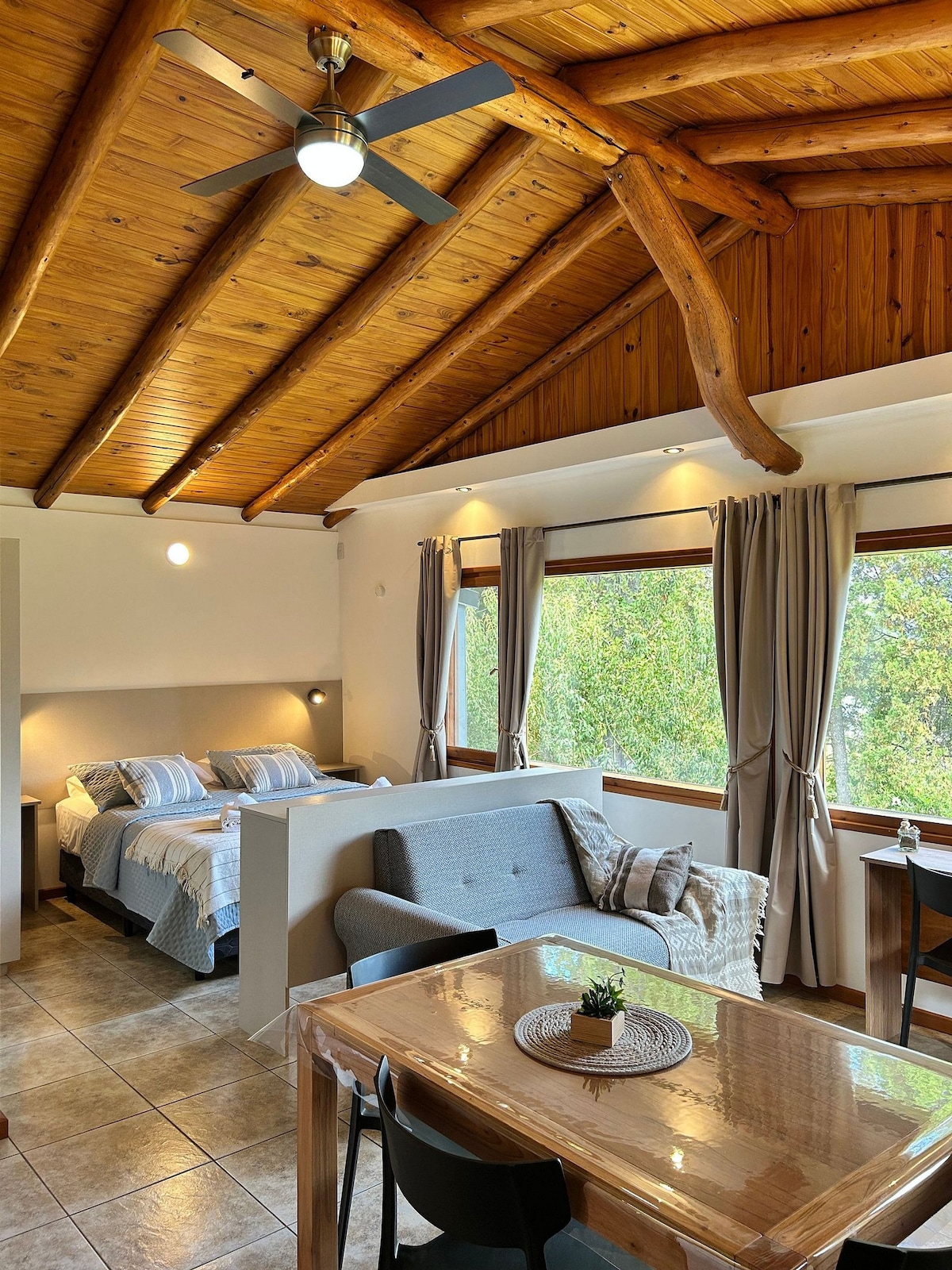 Cabana loft de montanha moderna e rústica, localizada em frente ao “km alfajor” da Ruta 40 em Lago Puelo, com vistas para as montanhas e a floresta. Ideal para 2/3 pessoas, possui cama queen e sofá-cama, Wi-Fi, espaço de trabalho, cozinha equipada, aquecimento a gás, estacionamento privativo e área chillout com vista para o Cerro Piltriquitrón e espaço relaxante no meio da natureza.
