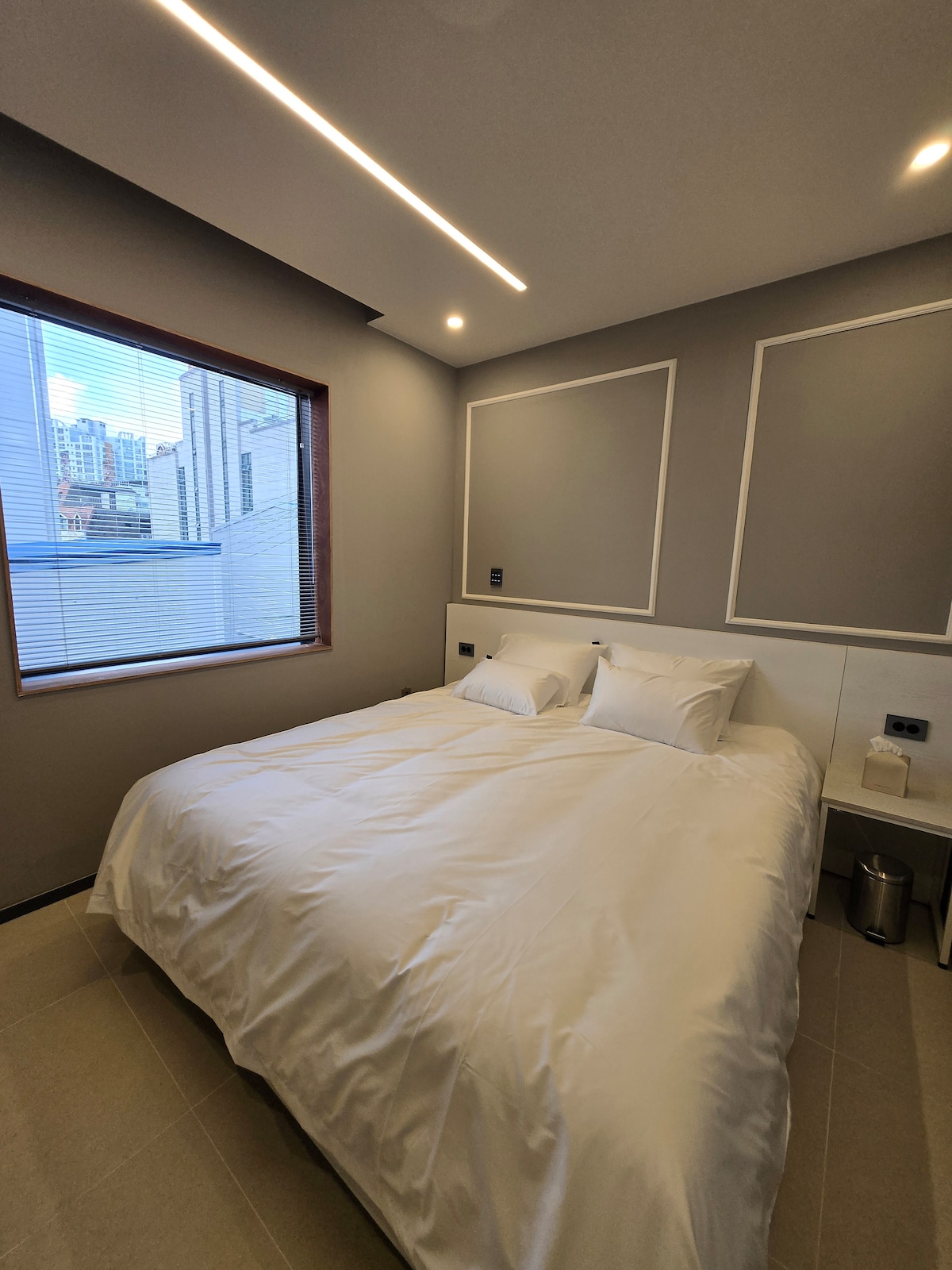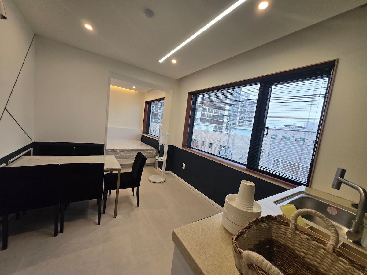 Estacionamento privado Este é um alojamento encantador com um interior elegante e luxuoso para 2 a 3 pessoas que querem usá-lo mais confortavelmente com 12 pyeong, 1 grande sobrecolchão king size, 1 lavatório e 1 mesa. Aquecimento de piso